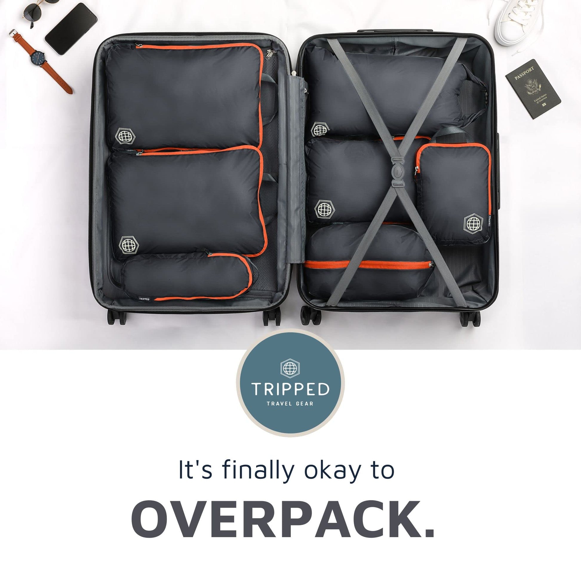 Large Compression Packing Cubes for Travel-Packing Cube Luggage Organizers 7 Piece Set for Checked Luggage-Ultralight, Expandable/Compression Bags by TRIPPED Travel Gear (Grey/Orange)
