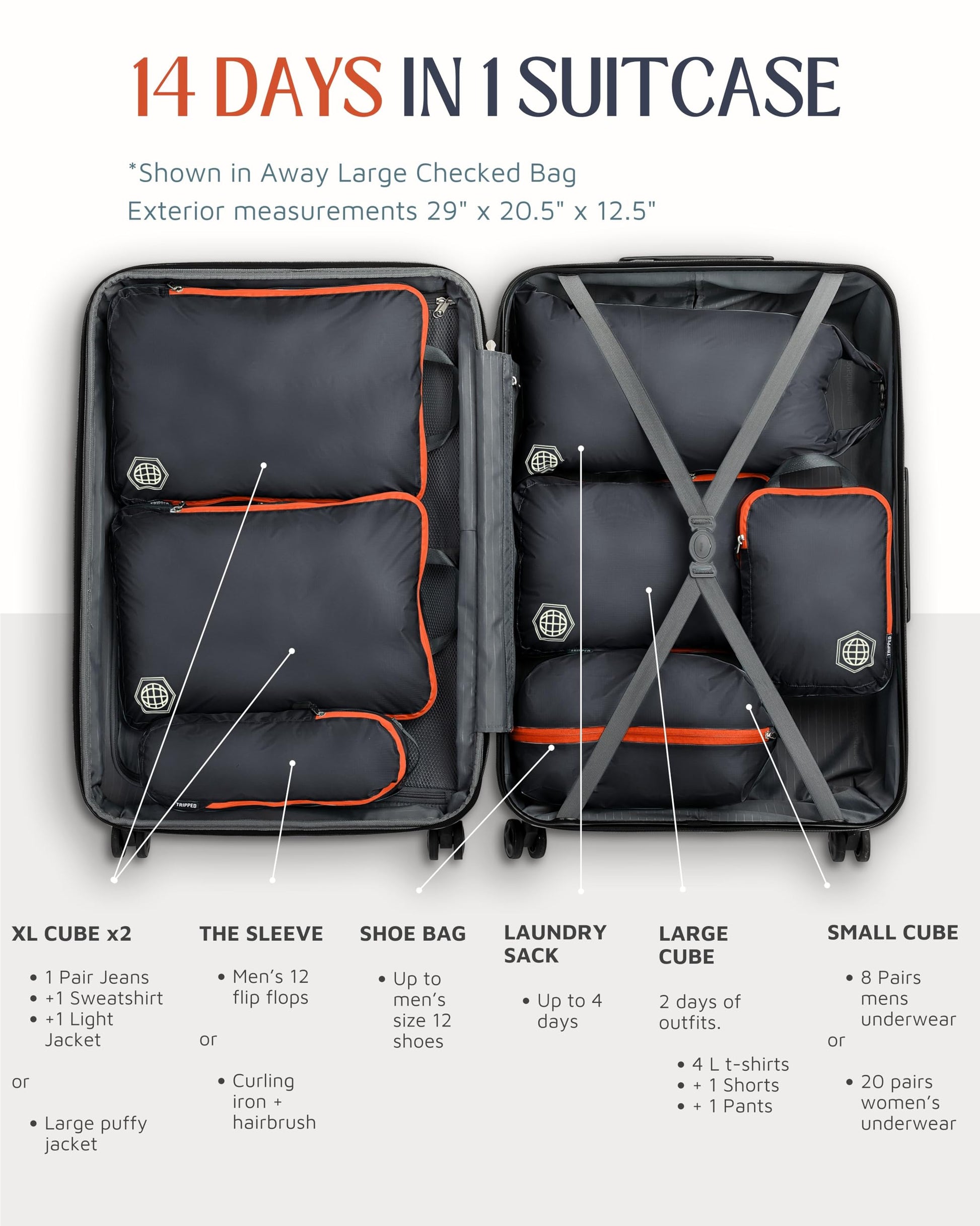 • PACKING CUBES MAKE TRAVEL EASIER. Compression cubes help you with packaging your clothes for upcoming trips by compressing the air out of them. Make your suitcase up to 30% more spacious!