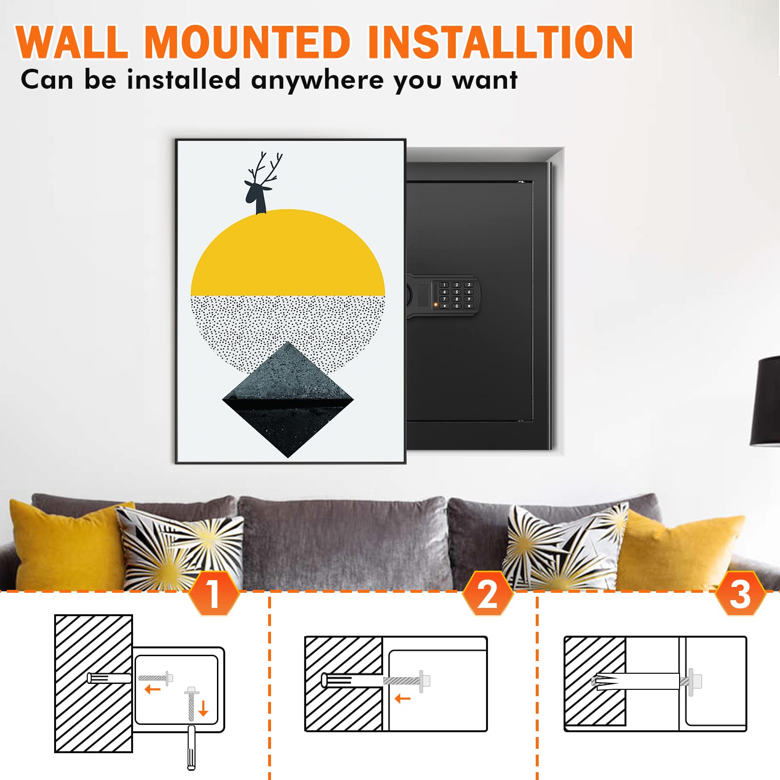 • INSTALL TO THE WALL/CLOSET/FLOOR: The compact dimensions of the safe make it easy to fit into any desired location within your home. Whether you choose to place it in a closet, under a desk, or securely mount it to a wall or floor, the safe seamlessly integrates into your living space without drawing unnecessary attention