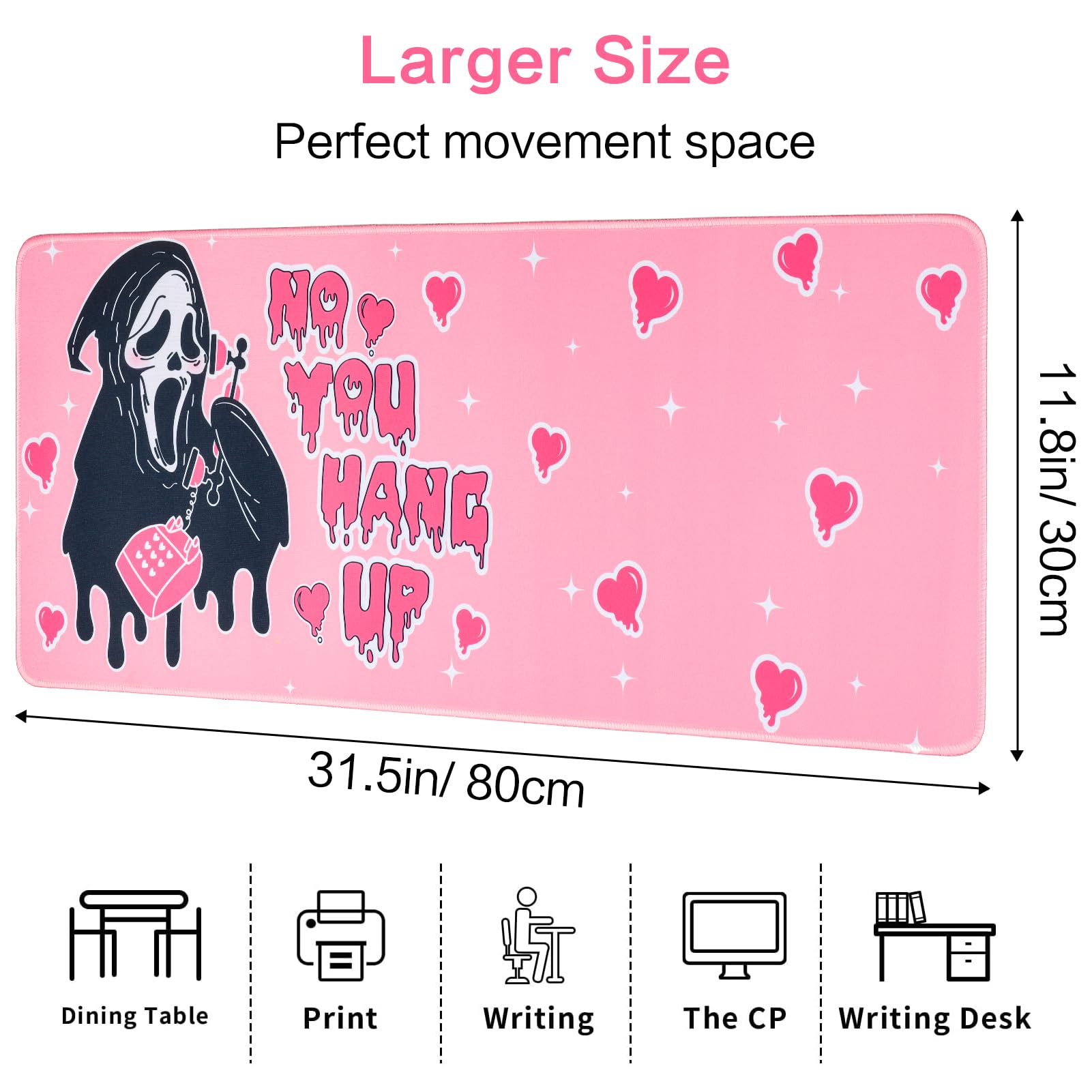 Large Gaming Mouse Pad 31.5 x 11.8in Desk Mat for Office Mousepad Anti-Skid Rubber Base Soft Comfortable and Durable Desk Pad (Pink)