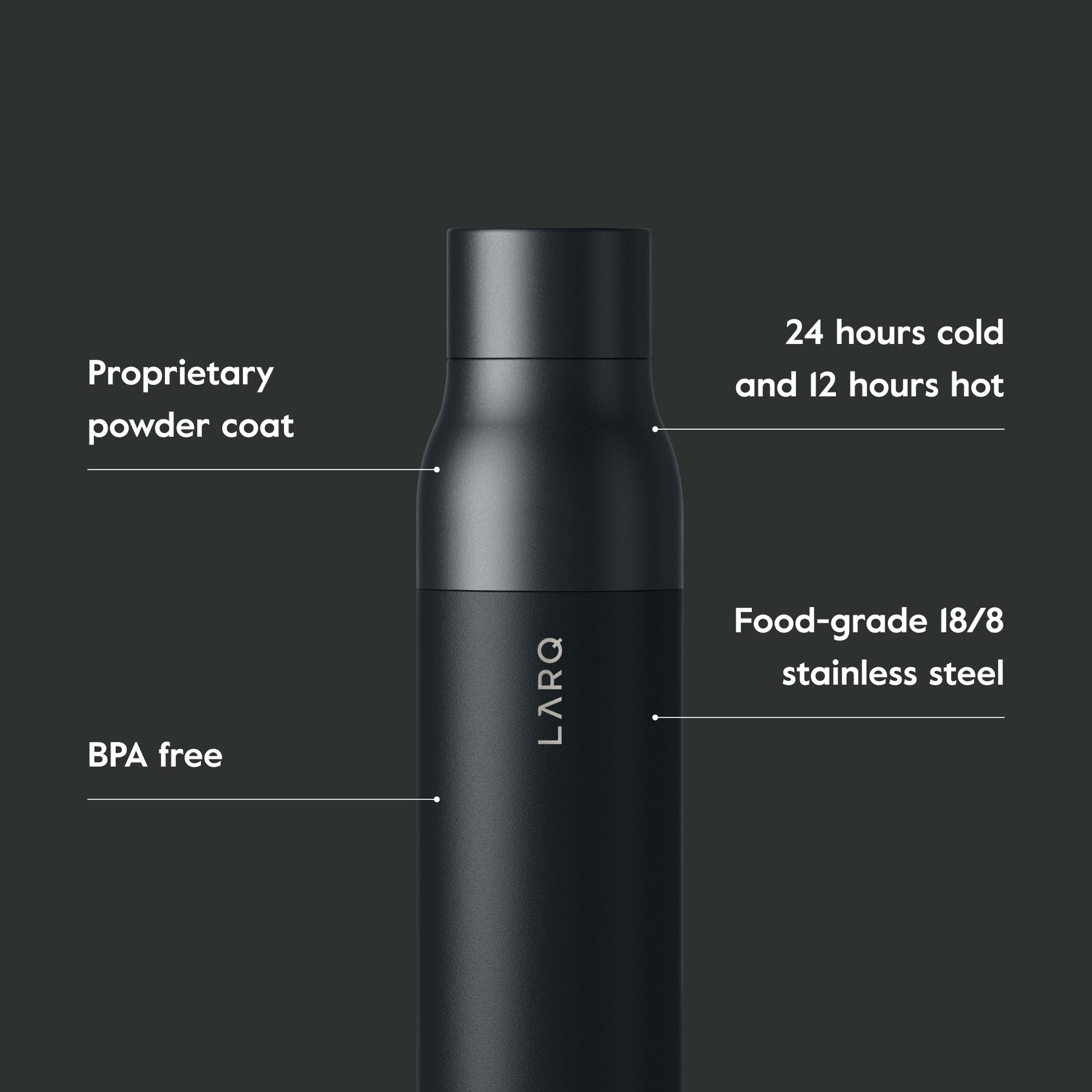 LARQ Bottle Twist Top 25 oz - Insulated Stainless Steel Water Bottle | BPA Free | Reusable Water Bottle for Camping, Office, and Travel | Keep Drinks Cold and Hot, Obsidian Black