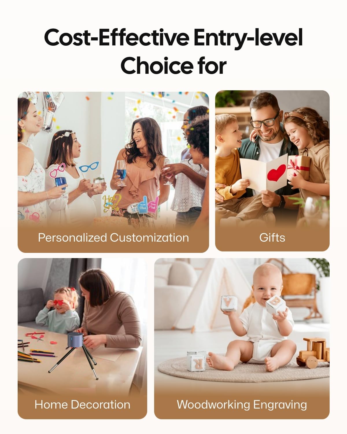 • Completely Friendly for Beginners: 100% tested on 10+ materials. Get free engraving templates (animals/festivals, etc.) + 24/7 exclusive after-sales support for beginners.