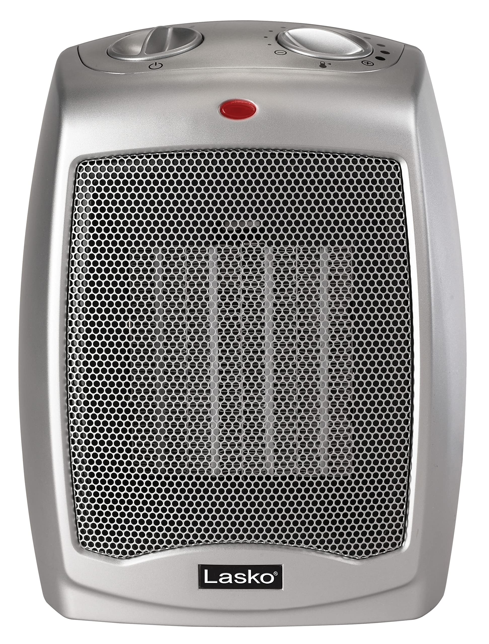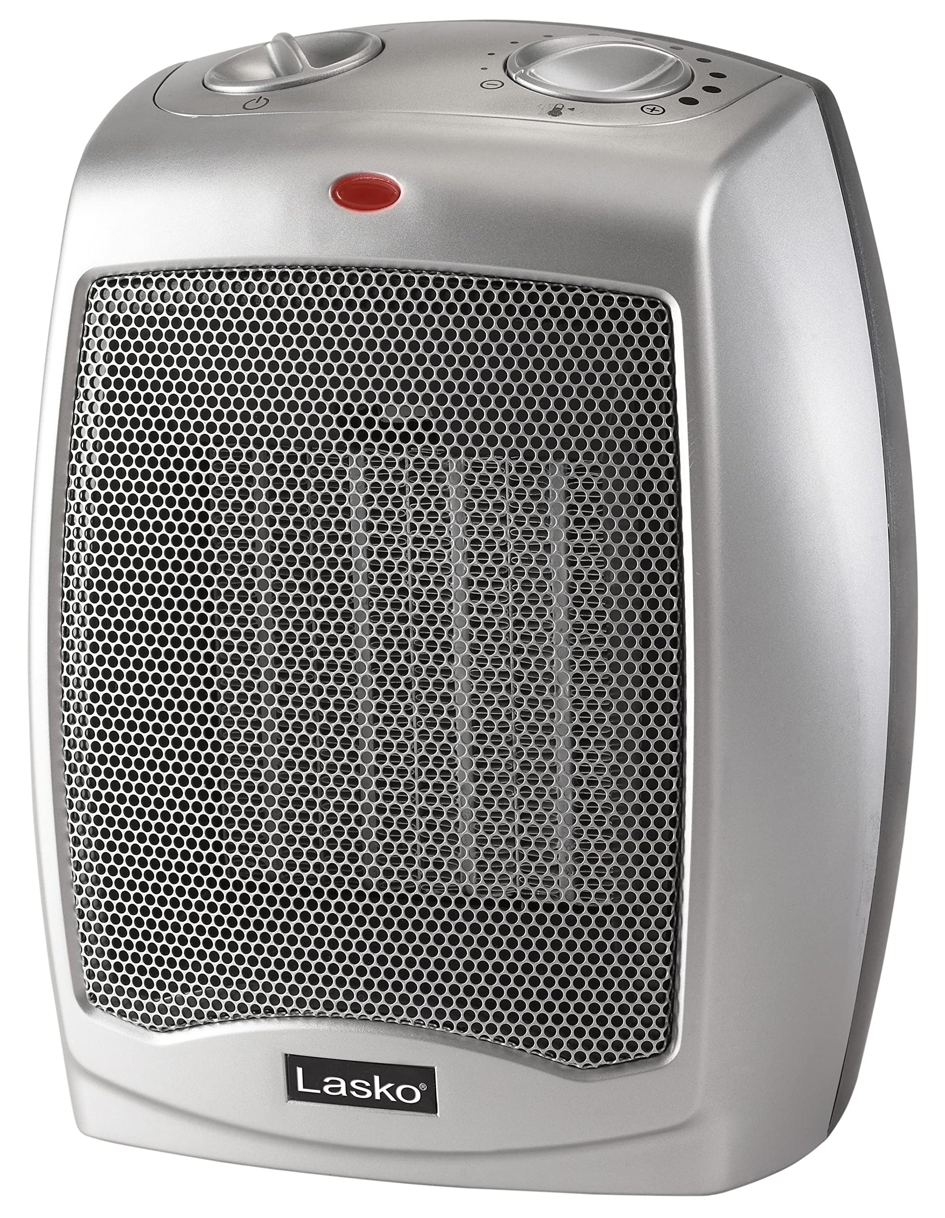 Lasko Desktop Electric Ceramic Space Heater with Adjustable Thermostat, 2 Heat Settings and Fan Only Mode, 9.2 Inches, Silver, 754200