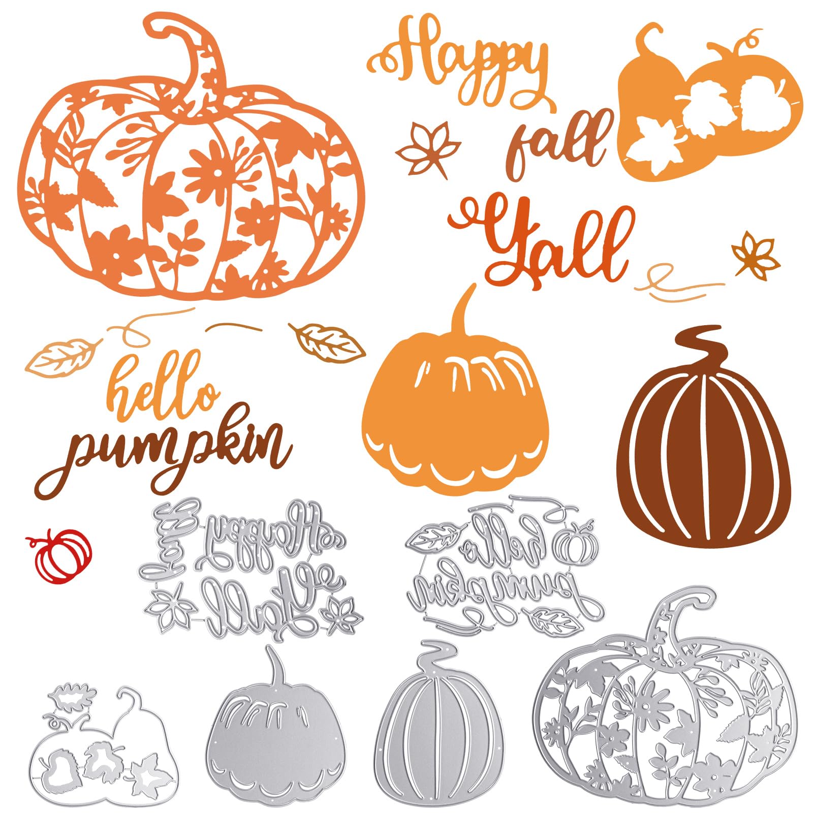 Lasnten Fall Pumpkin Metal Cutting Dies for Card Making Thanksgiving Metal Cutting Dies Happy Fall Yall Hello Words Die Cuts DIY Scrapbooking for Autumn Thanksgiving Stamps Photo Album Card Crafts