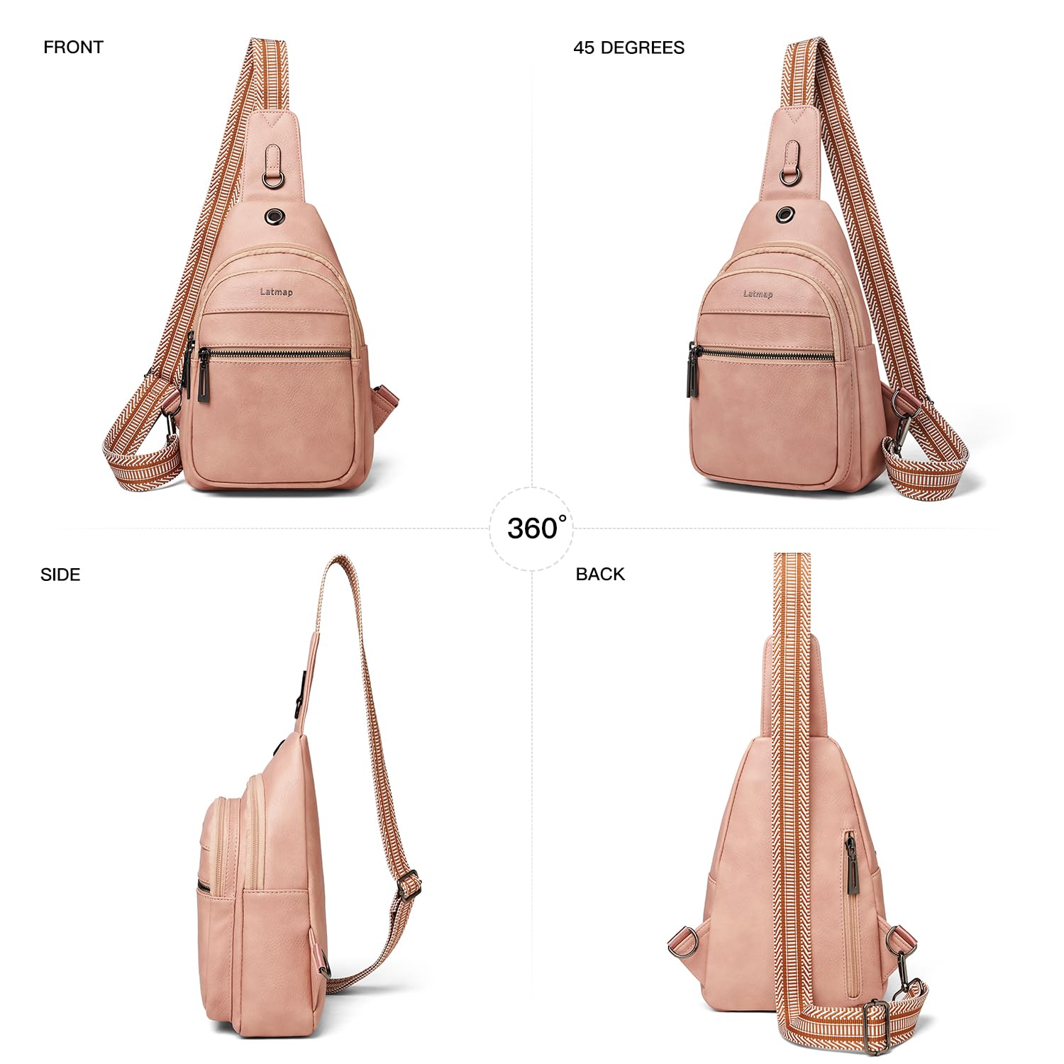 LATMAP Sling Bag For Women Faux Leather Anti Theft Small Casual Daypack Backpack Fanny Pack Crossbody Chest Bags Purse