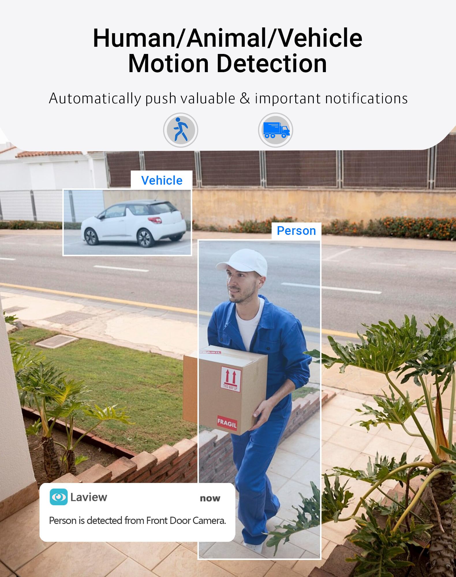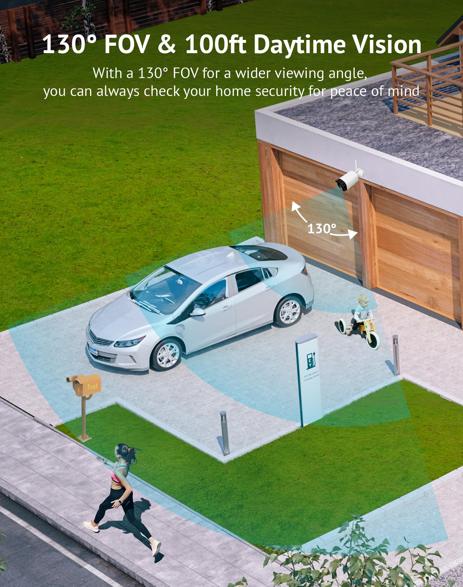 • 8MP 4K HD & 130° Wide Angle & Color Night Vision: LaView outdoor security camera features a 8MP lens and 130° angle for clear day and night surveillance; IR night vision covers up to 39 ft., ensuring high-quality images in darkness