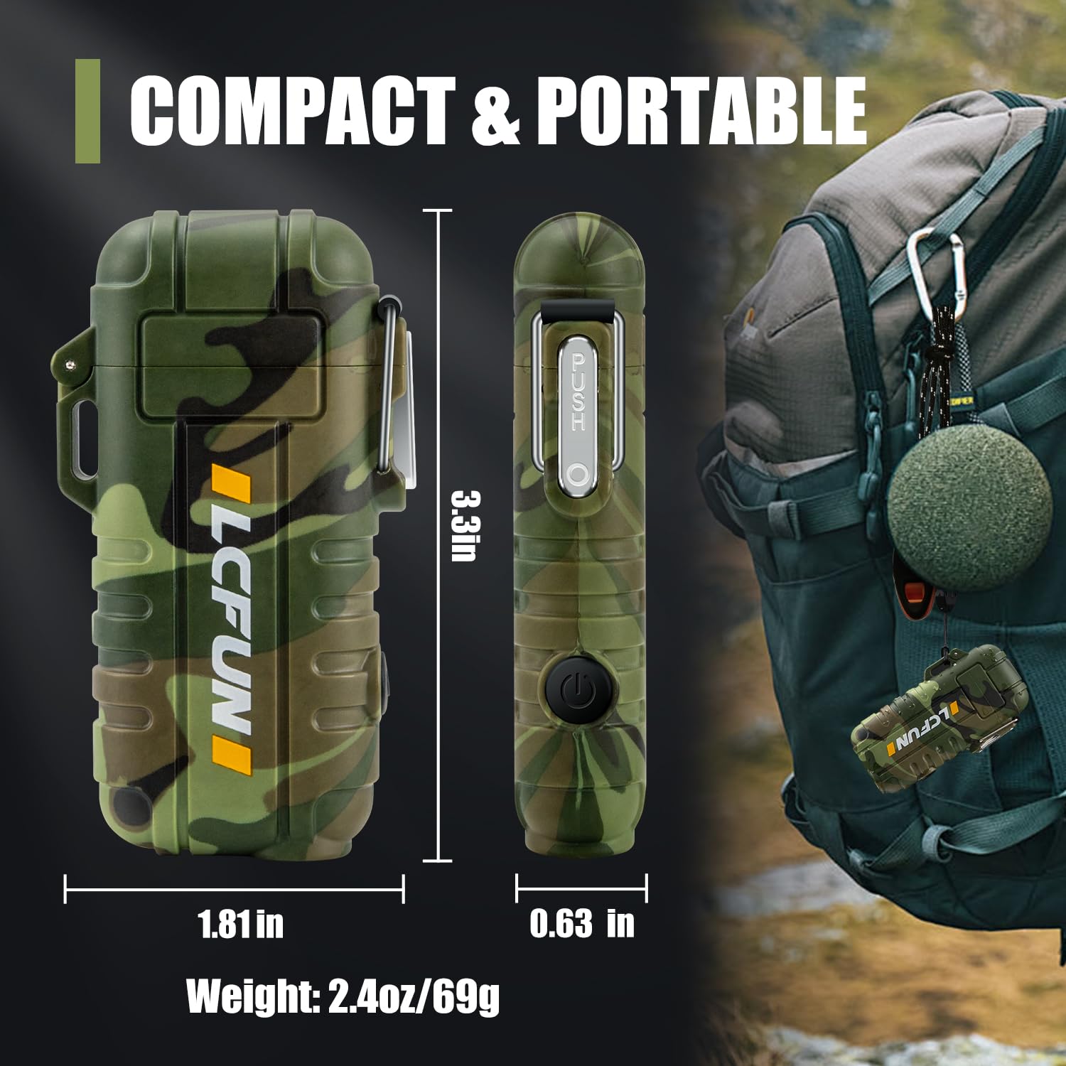 LcFun Electric Lighter USB Rechargeable Arc Lighters Windproof Plasma Lighters with LED Battery Display, Waterproof Electronic Flashlight Lighter with Lanyard for Camping, Survival Tactical Gear