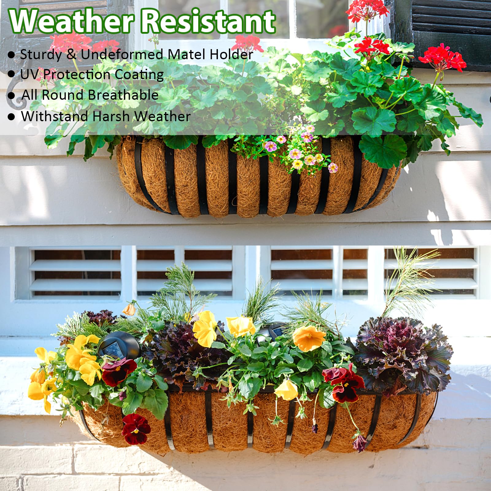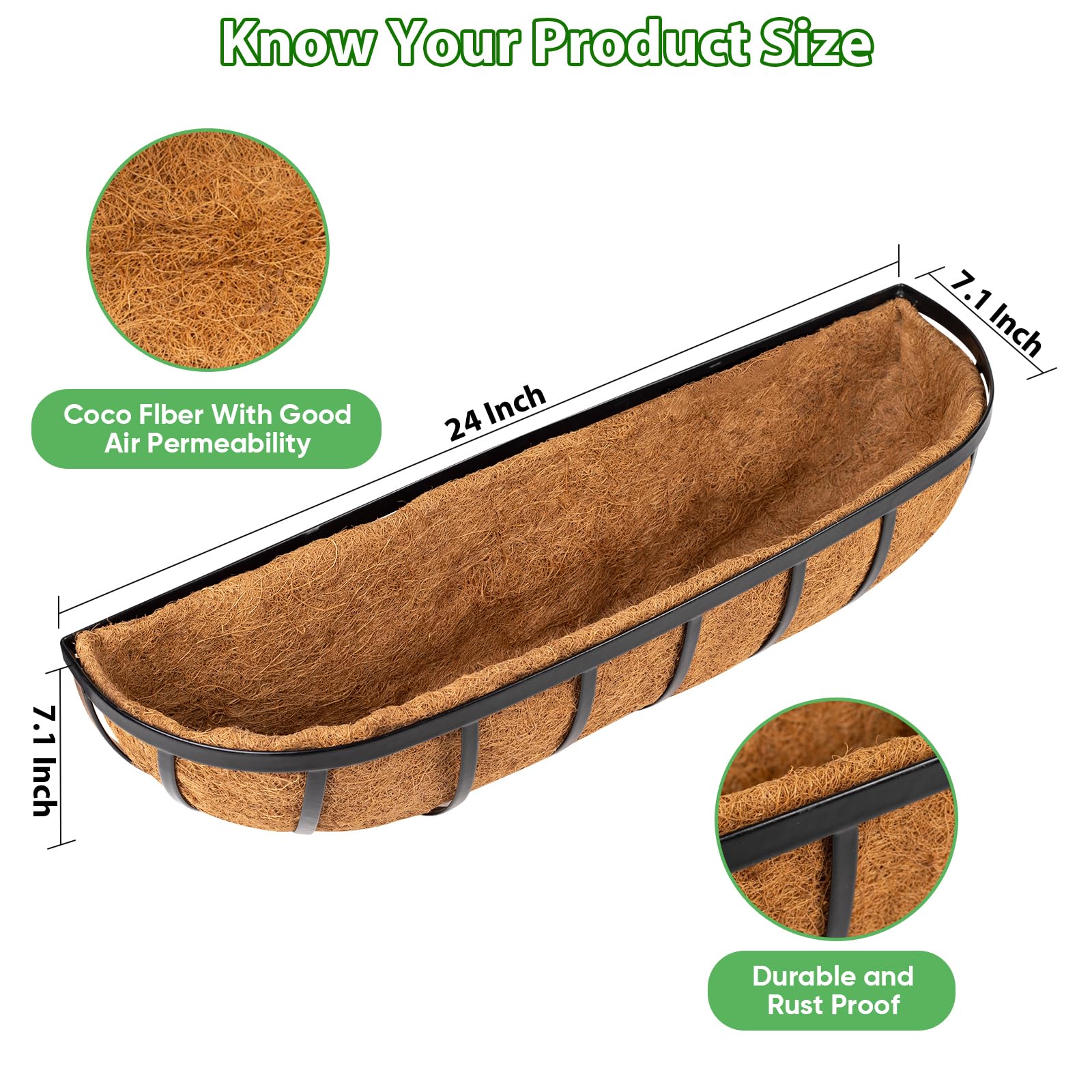 LCHUANG Railing Planter Window Box - 4 Pack 24 Inch Deck Balcony Rail Planter with Coconut Coir Liner, Fence Metal Hanging Flower Basket Deck Railing Planter Boxes for Outdoor Garden