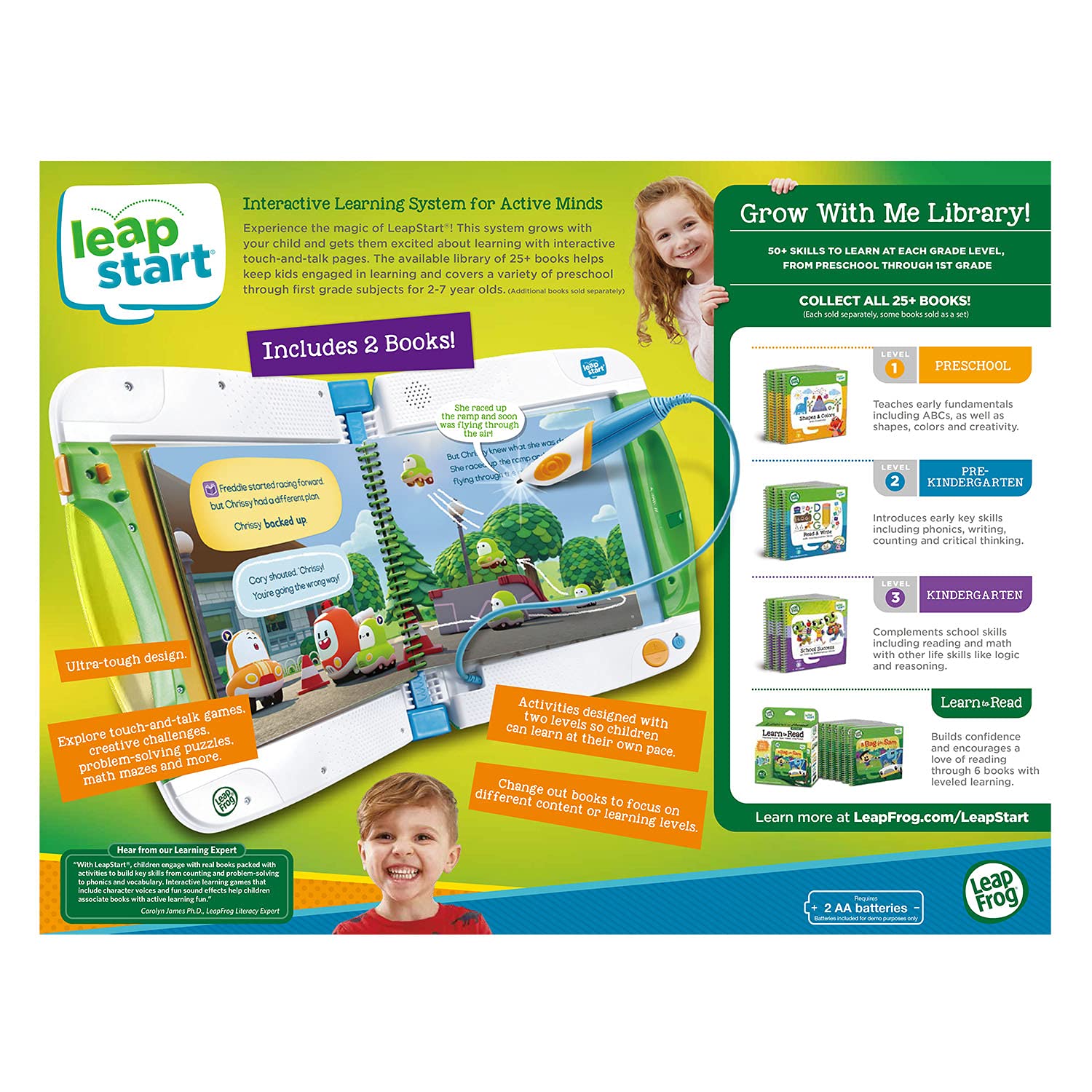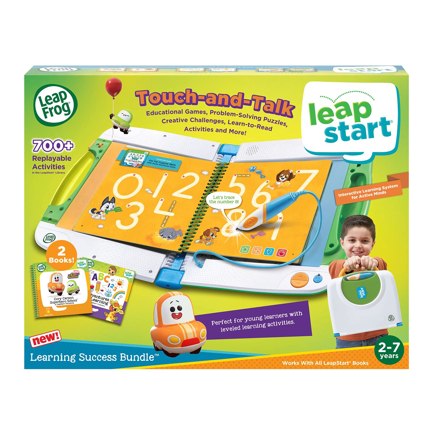 Details: Explore exciting new ways to learn with the LeapStart Learning Success Bundle interactive system. This system with a sleek, new design grows with your child and gets them excited about learning with interactive touch-and-talk pages. Activities that include games, puzzles and creative challenges enhance learning to help kids build math, reading, problem-solving skills and more. The Go! Go! Cory Carson Cory Carson Superhero School book, based on the popular animated series, and an additional activity book are included. The expansive LeapStart library of books (sold separately) covers a variety of preschool through first grade subjects for 2-7 year olds with more than 30 activities in every book. Many replayable activities have two levels with 50+ key skills per grade level, so kids can play and learn at the right level and move up when they’re ready. Included books are preloaded. The easy-to-hold stylus is comfortable for kids of all ages, promotes proper writing grip and neatly clicks into the cover for storage. Take it on the go using the carrying handle. A computer with an internet connection is required to load book content onto the LeapStart system. Intended for ages 2-7 years. Requires 2 AA batteries. Batteries included.