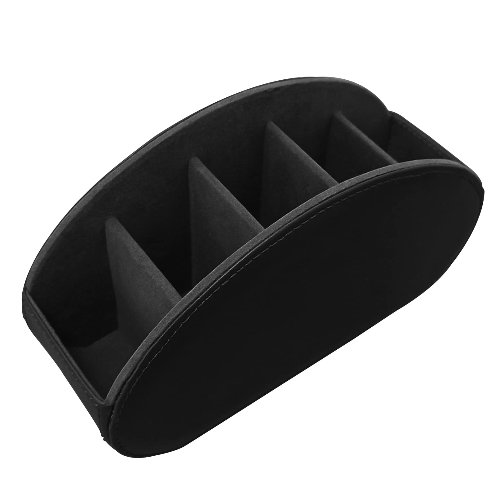 Leather Remote Control Holder with 5 Compartments TV Remote Caddy Storage Box/Tray,Desktop Organizer Store Controller,Glasses,Brush,Media Player,Pen,Space Saver for Bedside Table/Office Desk(Black)