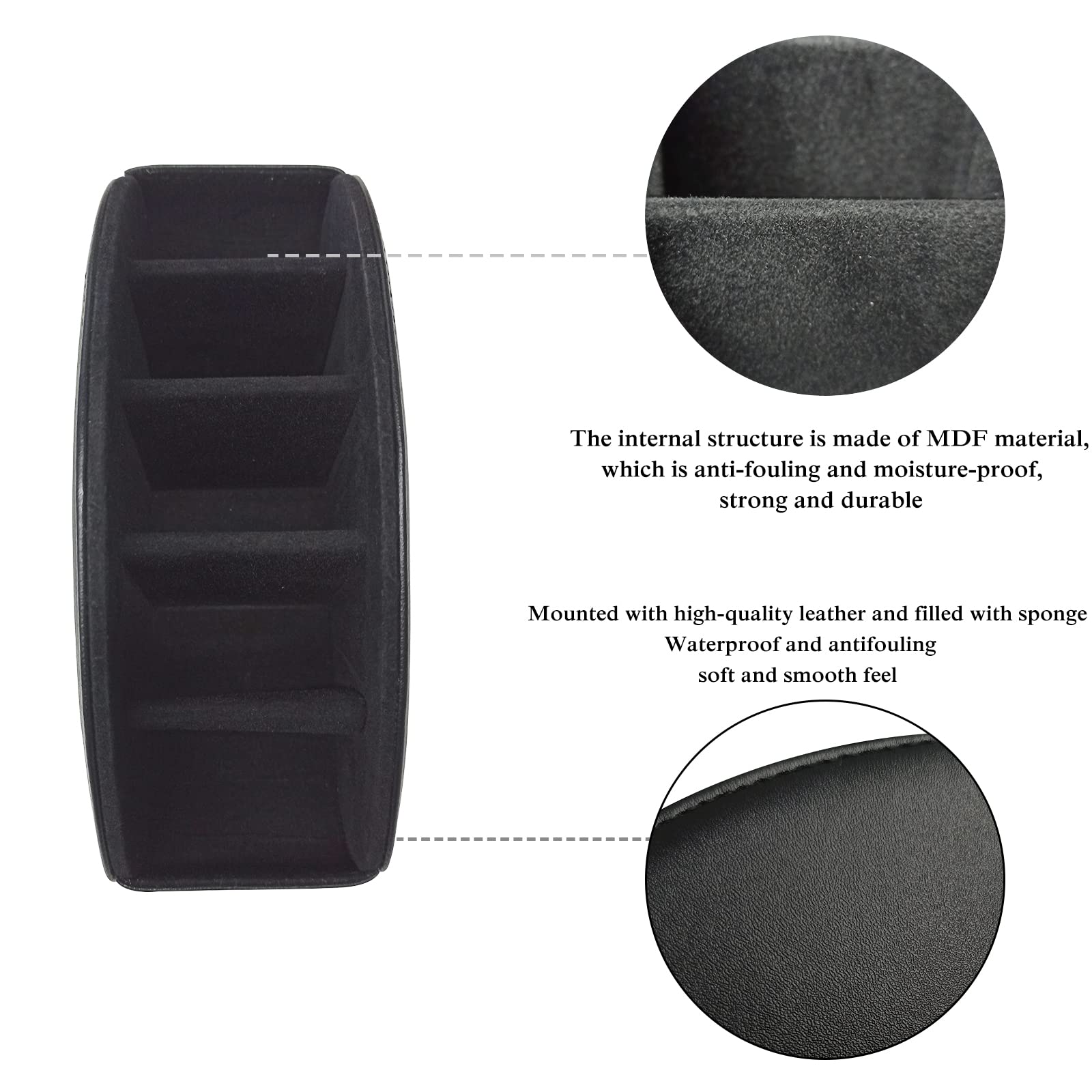 • The design is beautiful and practical: the arc-shaped plus line design, with sponge filling under the leather, looks very high-end, 5 divisions are very suitable for putting all your remote controls on hand and easy to identify, saving time and energy Space, to provide protection for the remote control from scratches, grease and abrasions.