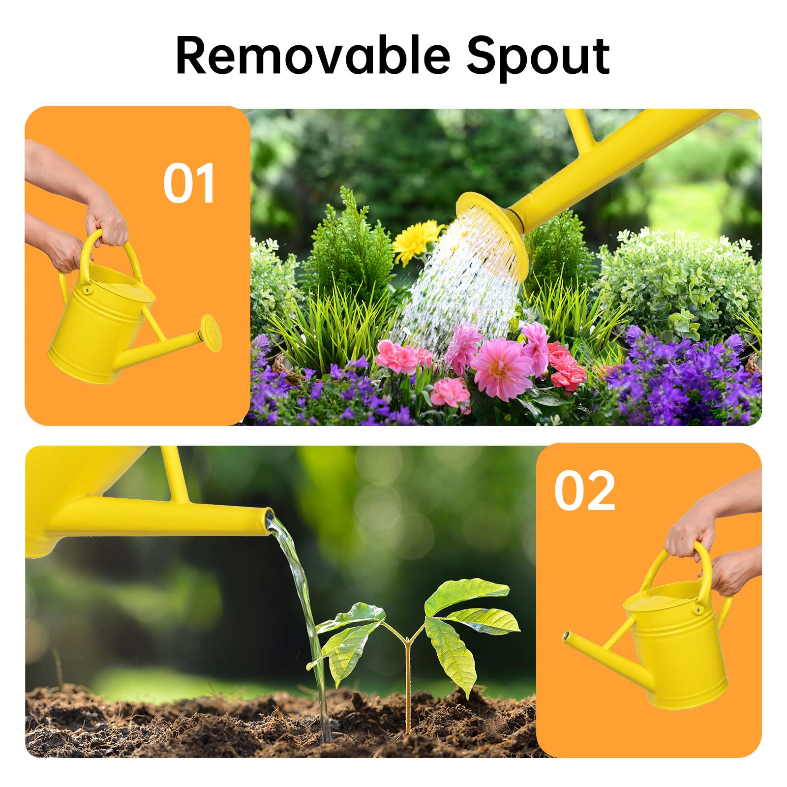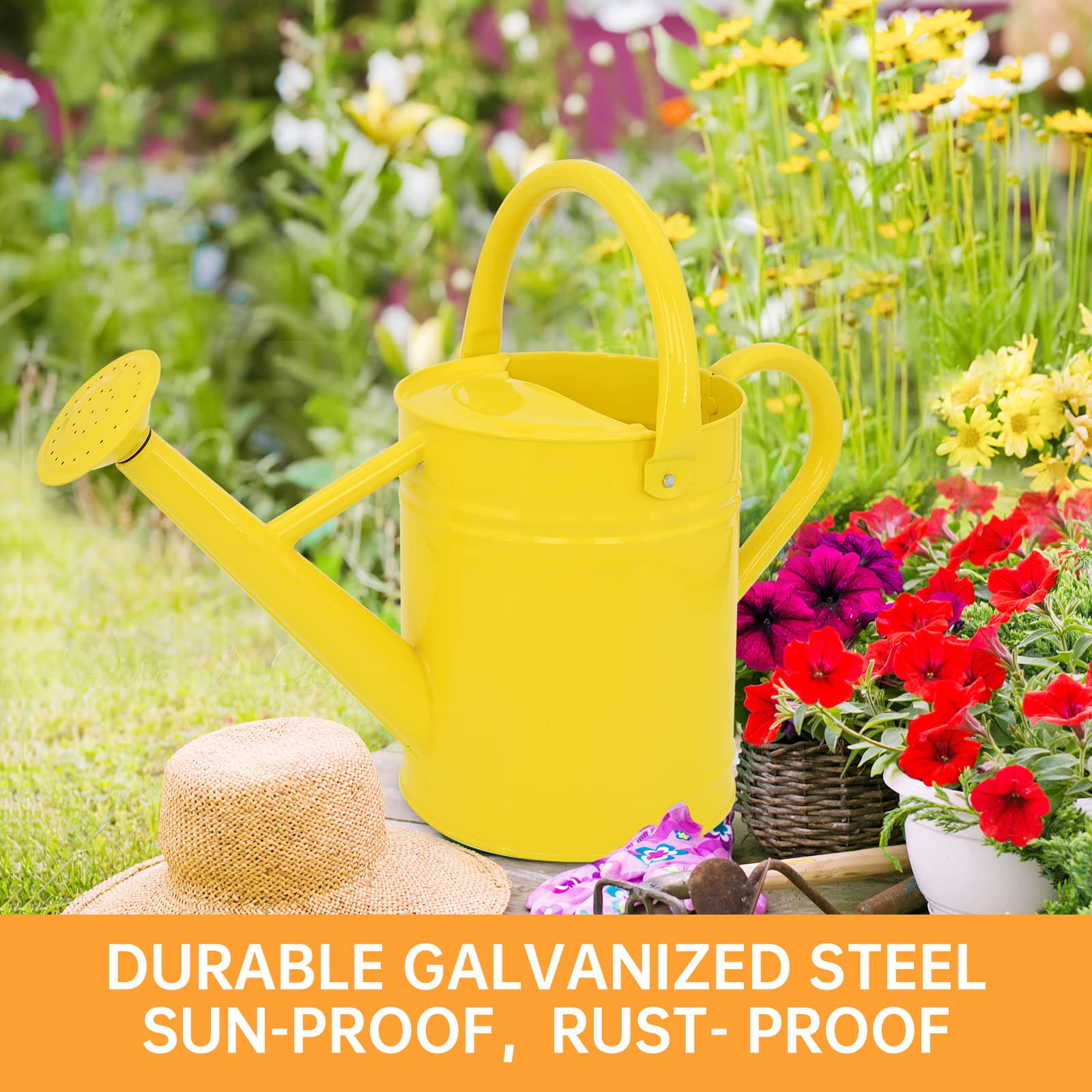 Lechloris Metal Watering Can for Outdoor Plants, Galvanized Steel Watering Can with Removable spout, 1 Gallon,Perfect Home & Garden Décor Yellow