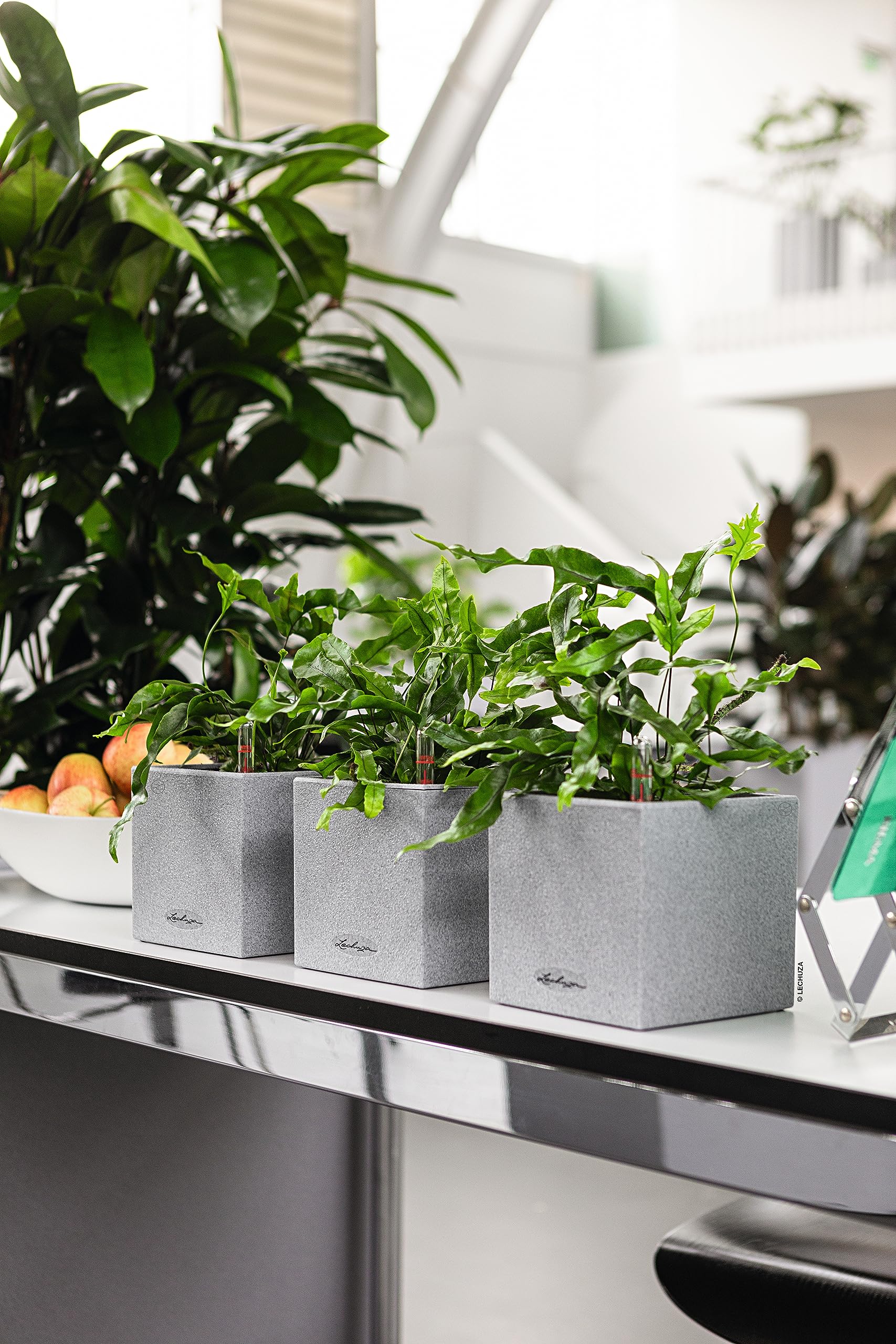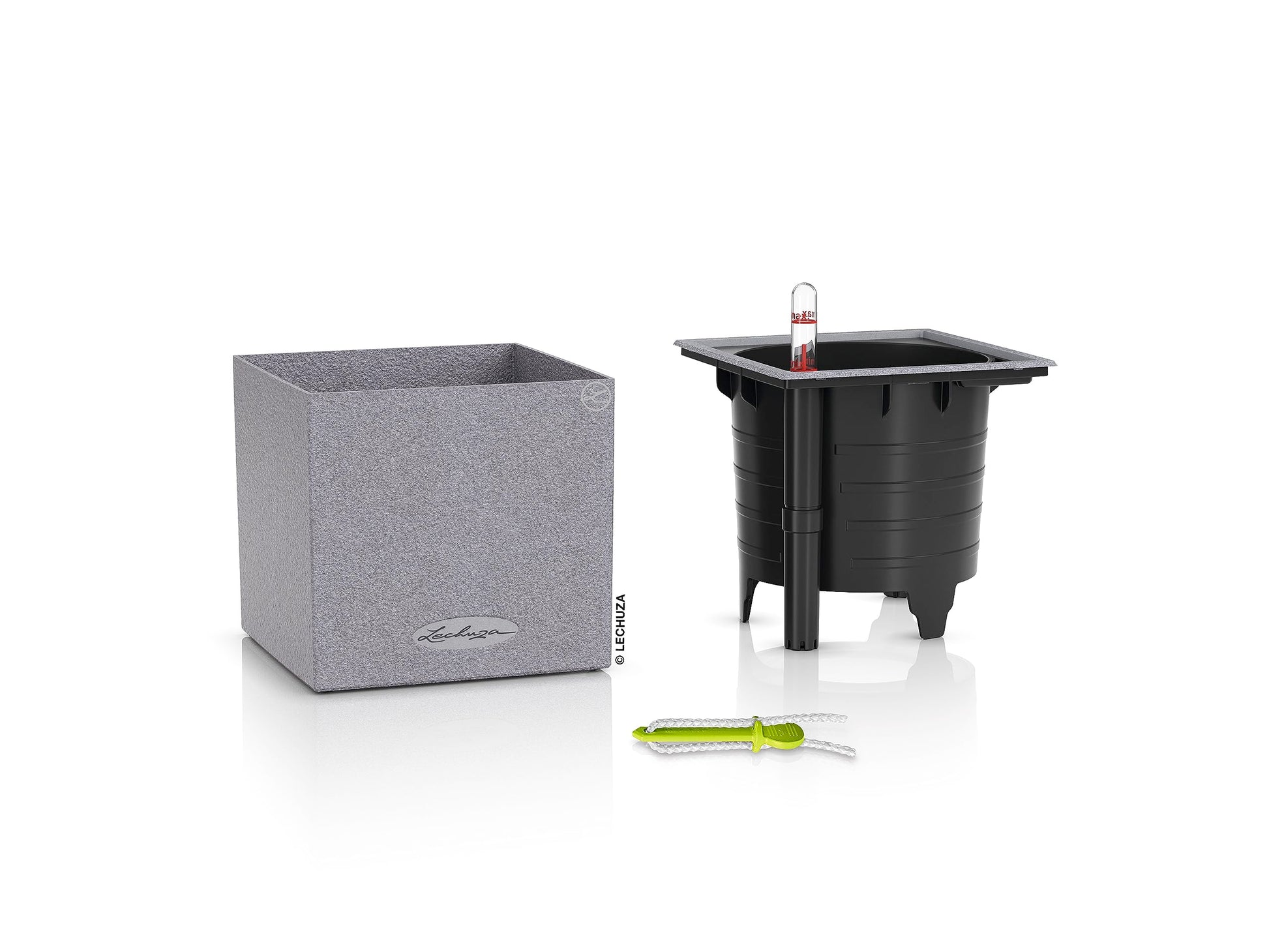 Lechuza Canto Stone 14 Self-watering Table Planter with Water Level Indicator is the perfect eye-catching planter to show off your favourite greenery. The contrast of rustic stone and natural green has a modern effect and gives small plants the wow-factor. It fits perfectly on small shelves, sideboards or desks. Measures 14 cm length by 14 cm width by 13.5 cm height. Comes in stone gray color.