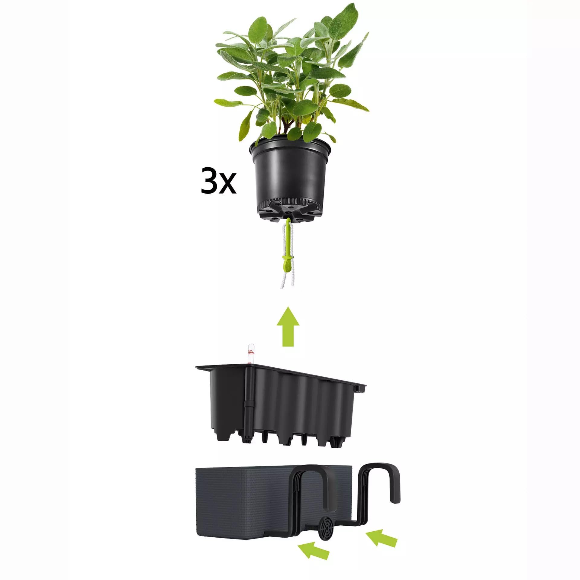 Lechuza Cube Color Triple Self Watering Plant Pot, Slate, 40 cm Diameterx 14 cm Width x 13.5 cm Height