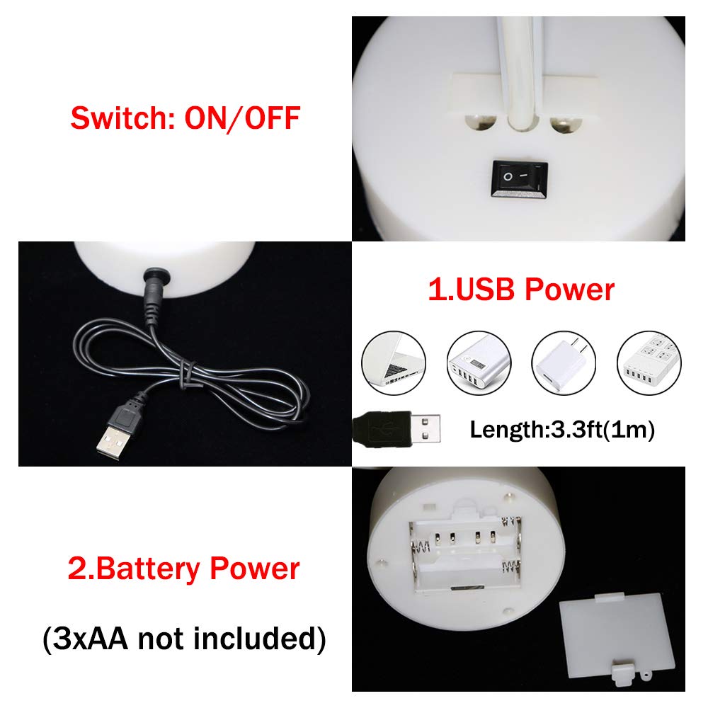 • 【USB/Battery Operated】Just use 3xAA batteries power supply (batteries not include) or USB power supply.