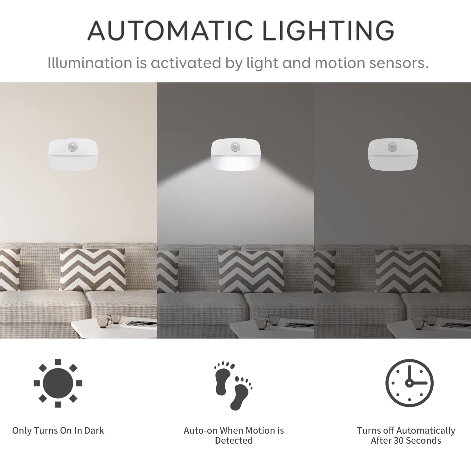 • ENERGY SAVING & ENVIRONMENTAL PROTECTION The night light consumes only 0.5W, the power consumption is minimal, motion sensor night light saves up to 90% energy than no motion night light, powered by 3 AAA batteries (battery not included). Automatic on/off function with a lifespan of up to 50.00 hours, saving energy.