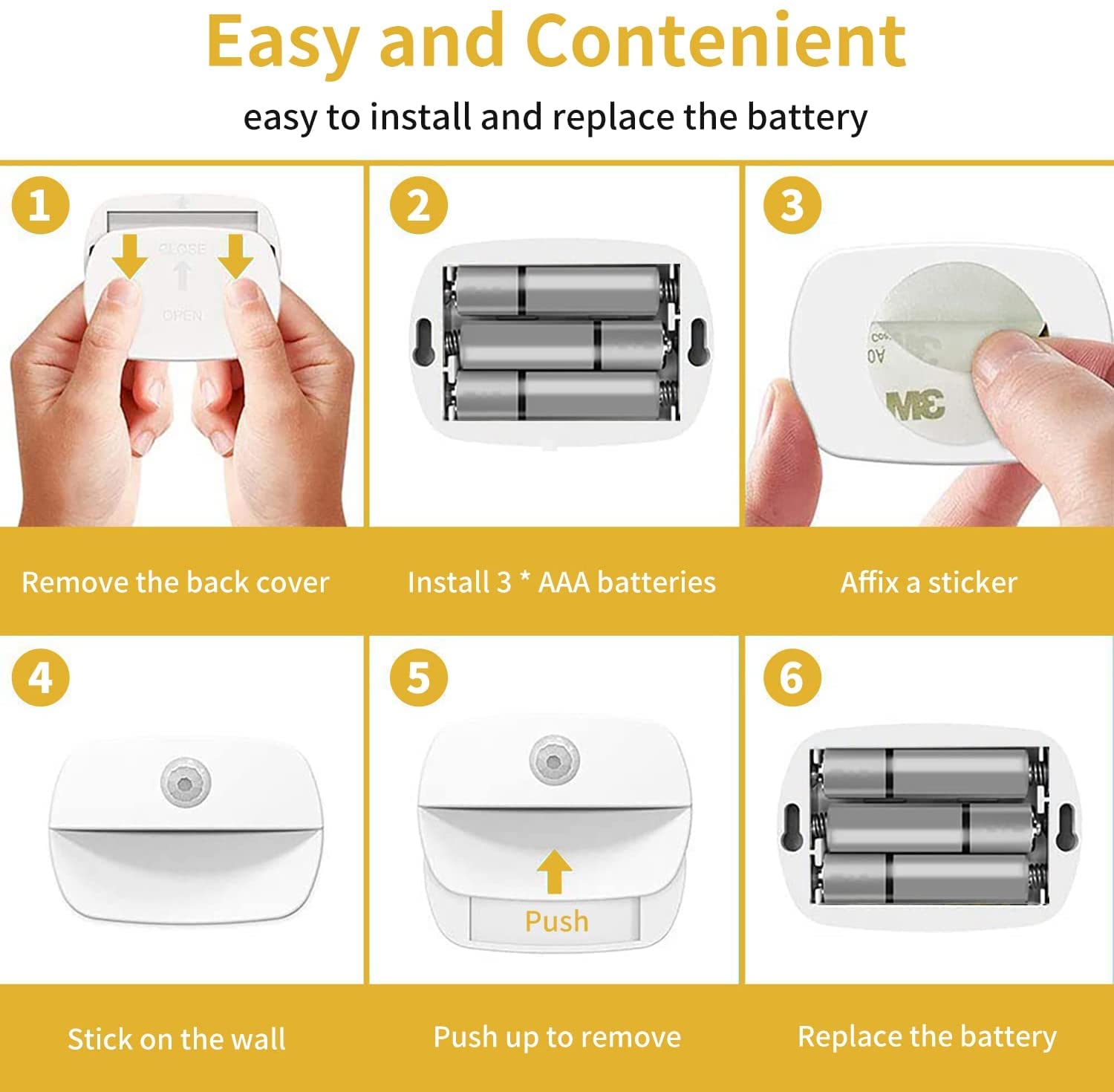 • Easy installation: motion sensor with the included double-sided tape. No screws, nuts or tools required, you can apply it to any smooth surface.