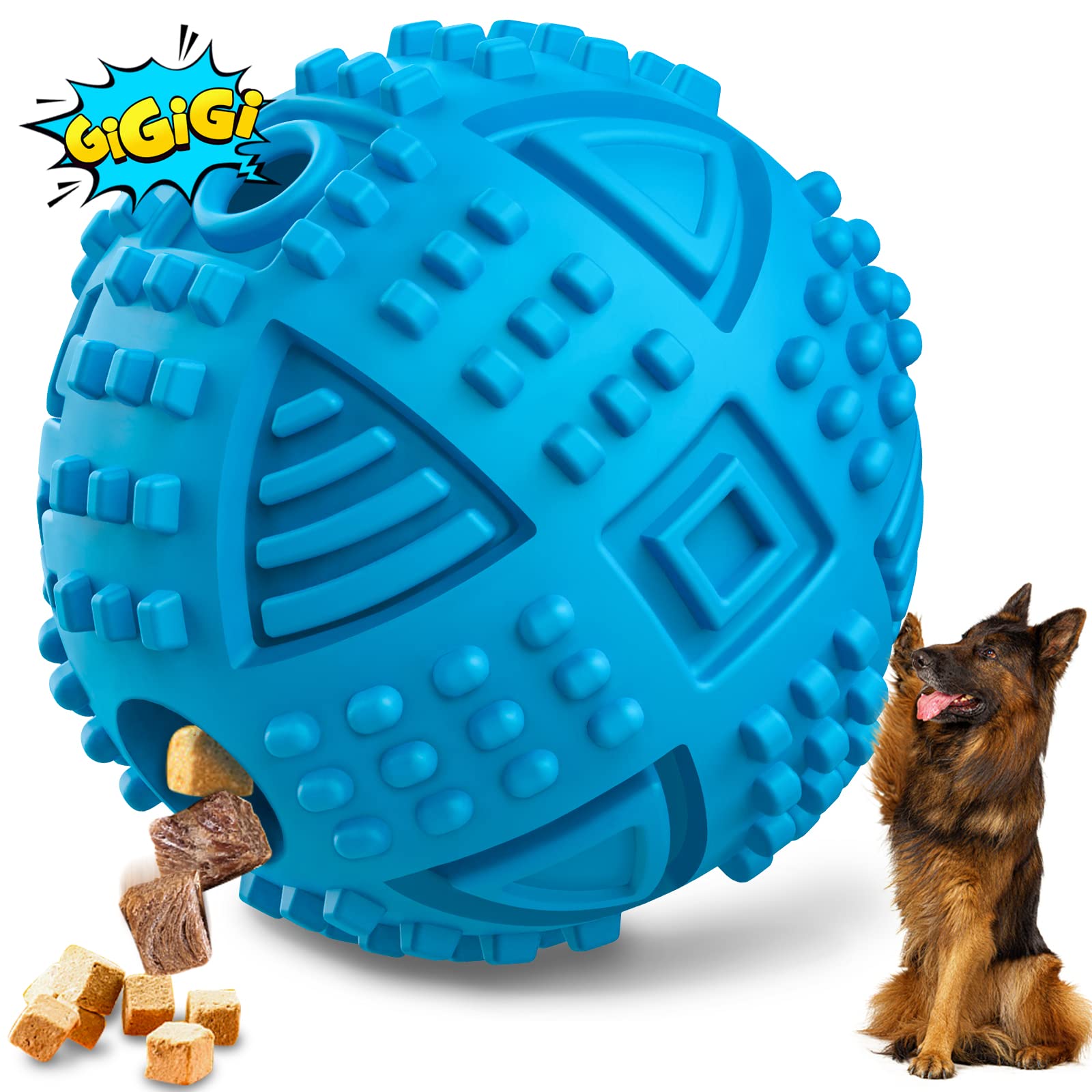 • DOG BALL ONE FOR ALL INSTINCTUAL NEEDS: Dogs crazy for chasing, the dog treat ball make chasing difference- puzzle, treats, chewable and funny sound to get smarter and happier dogs! Dog treat dispenser improve IQ while acquiring food, textured interactive dog toys with beef flavor are easier to chew and attractive. Dog puzzles ball rolling with special funny squeaky sound will drive dogs more excited to run, perfect dog brain stimulating toys, puzzle toys for dogs to keep them busy long lasting