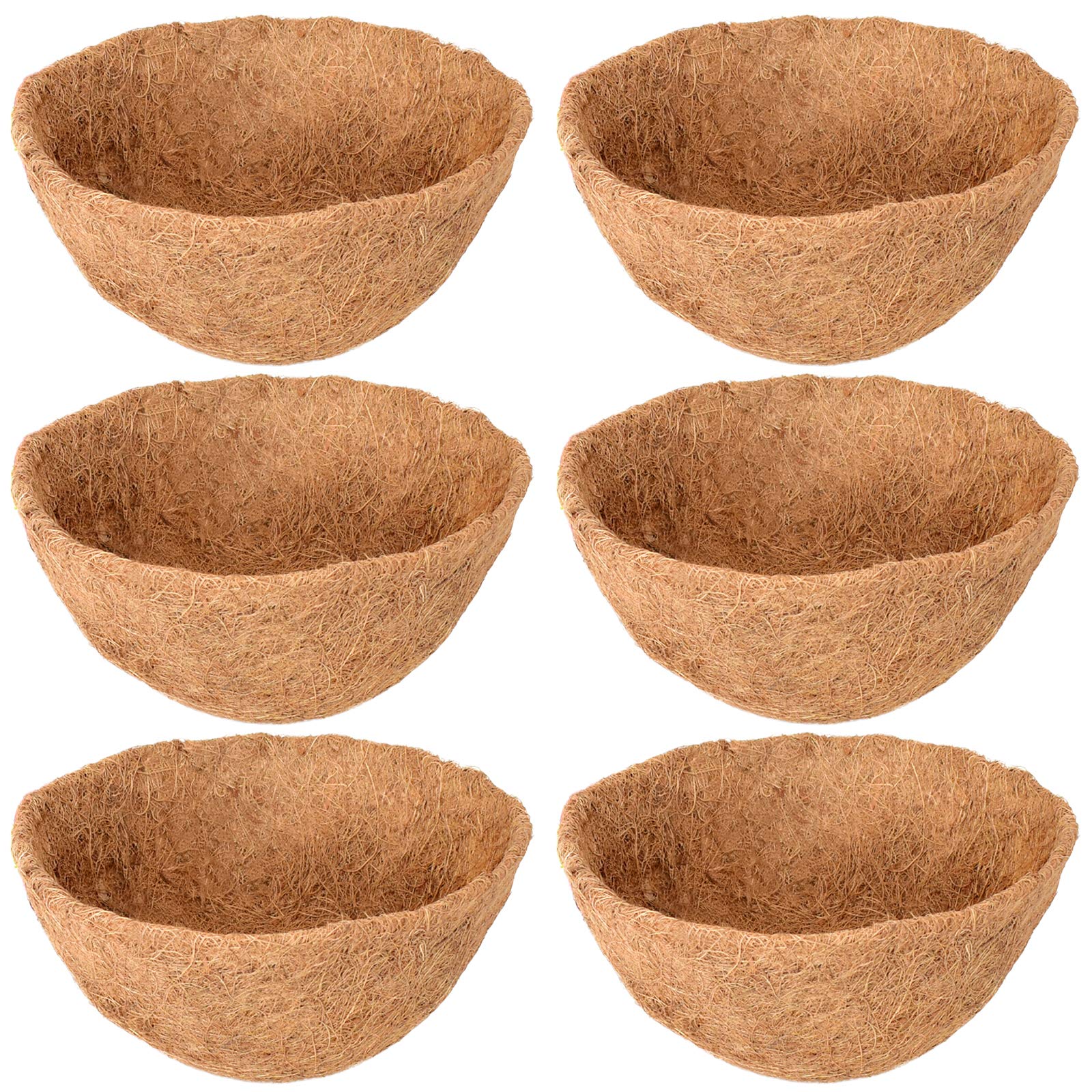 Legigo 6 Pack 14 Inch Hanging Basket Coco Liners Replacement, 100% Natural Round Coconut Coco Fiber Planter Basket Liners for Hanging Basket Flowers/Vegetables