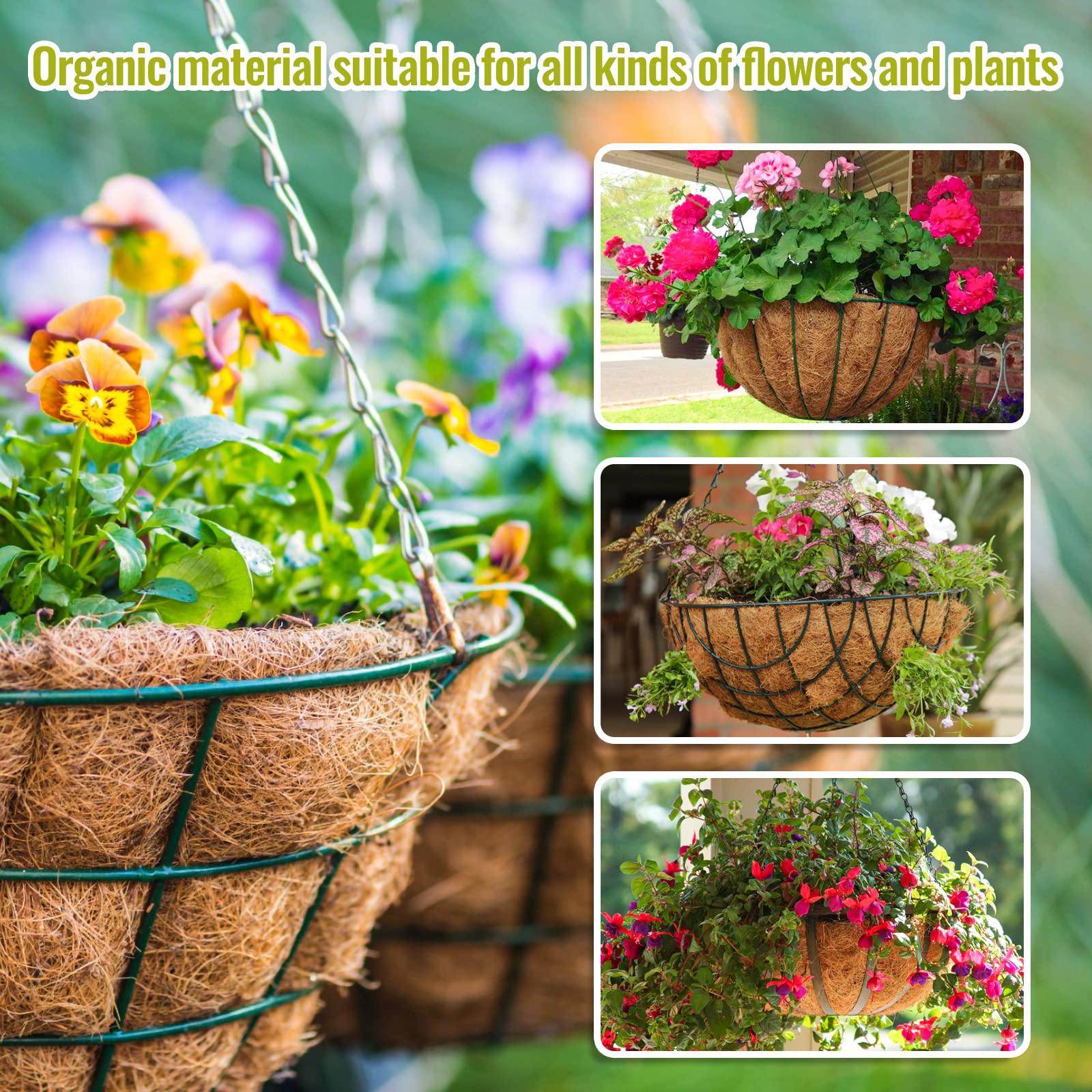 • Wide Application: Our coconut fiber planter liner is suitable for planting all kinds of flowers and plants, you can put these indoor plant basket liners in gardens, balconies, patios, porches, hotels, offices, and also can be used as greening projects, shopping malls, hotels, garden nurseries, etc., more uses look forward to your discovery