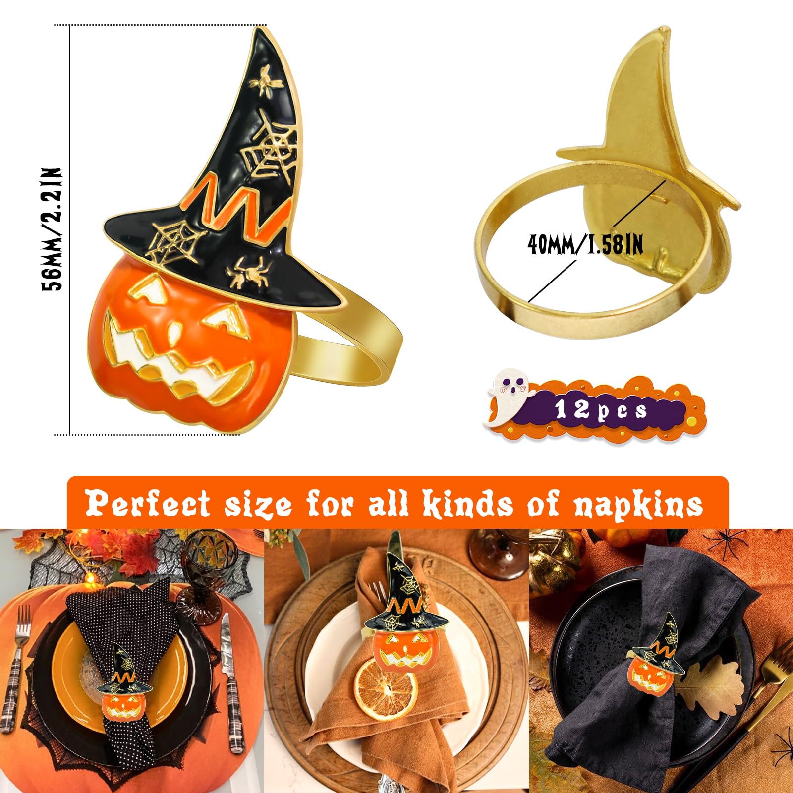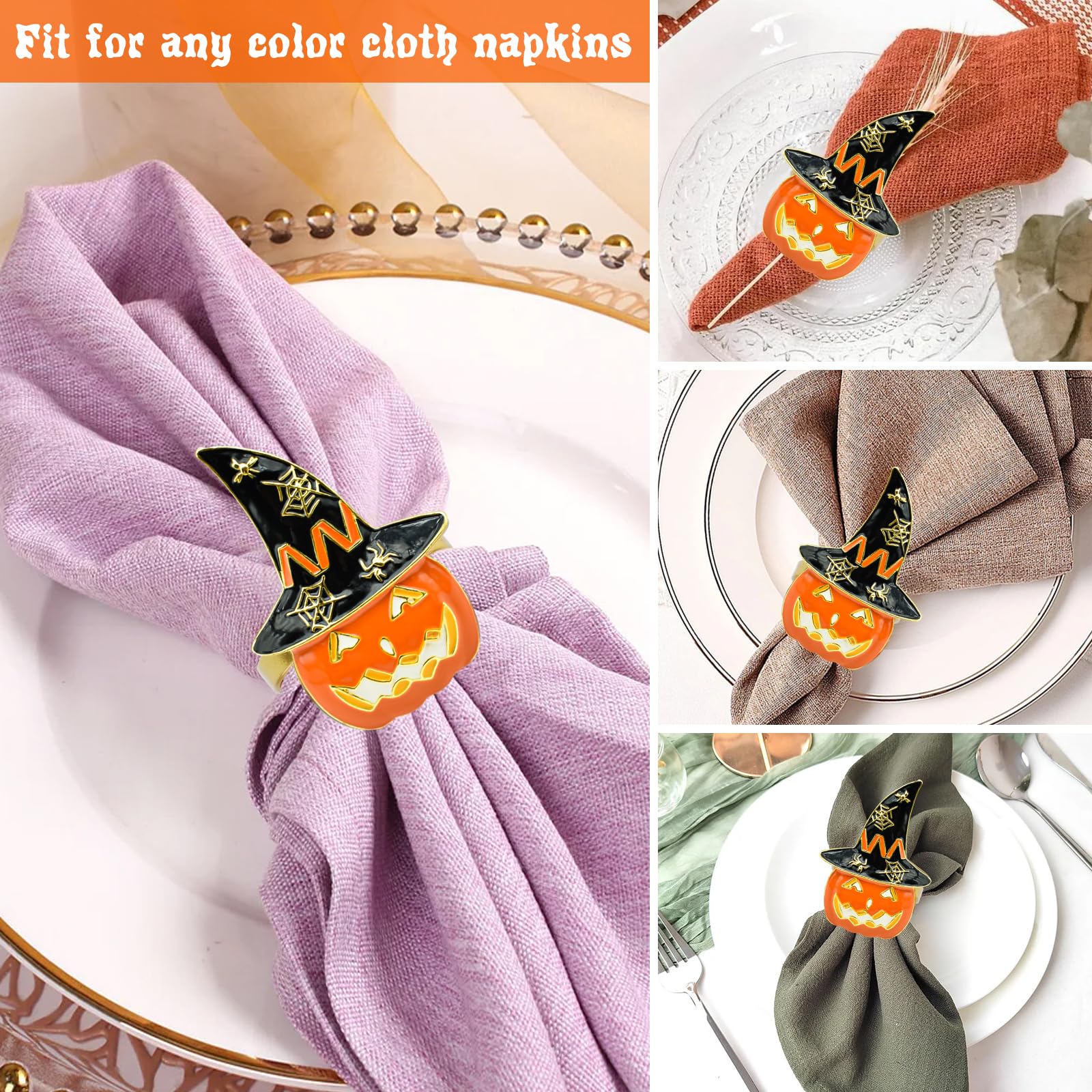 • Eye-catching Design: Each pumpkin napkin ring buckle features a pumpkin-shaped design with witch hat, spider and cobweb, which are classic elements of Halloween; Make the whole napkin ring endowed with lively feeling, also add fun to your Halloween table