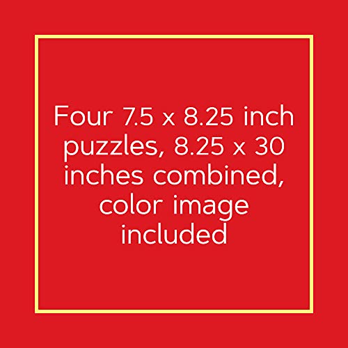 • INCLUDES: Four 100-piece puzzles, 7.5 x 8.25-inch each when fully assembled, 8.25 x 30 inches when combined, 11 ½ x 7 ¾ x 1 ½ inch box, and a full-color printout of the complete puzzle image.