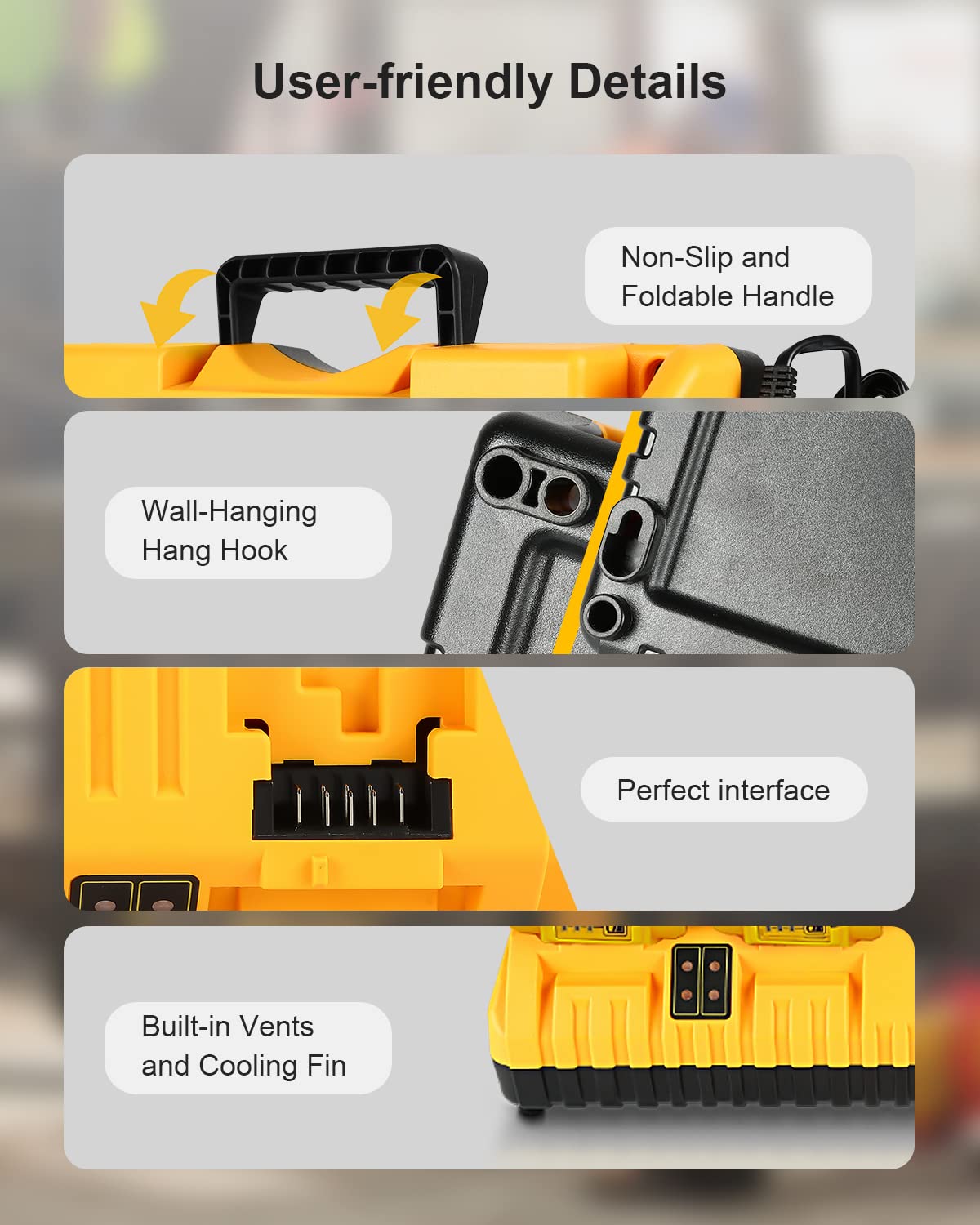• Superior Compatibility: All ports of our battery charger charge at the same time 12V MAX, and 20V MAX battery, perfectly compatible with Dewalt batteries, such as DCB120,DCB124,DCB127,DCB204 DCB205-2,DCB206, etc.