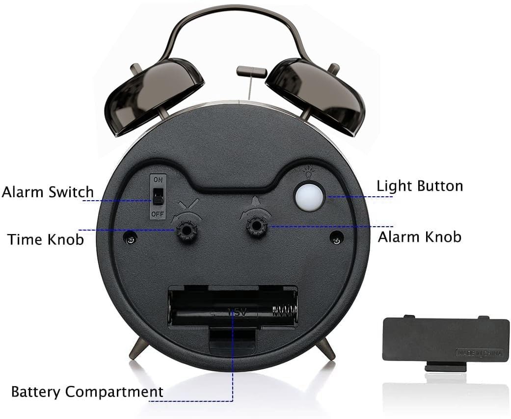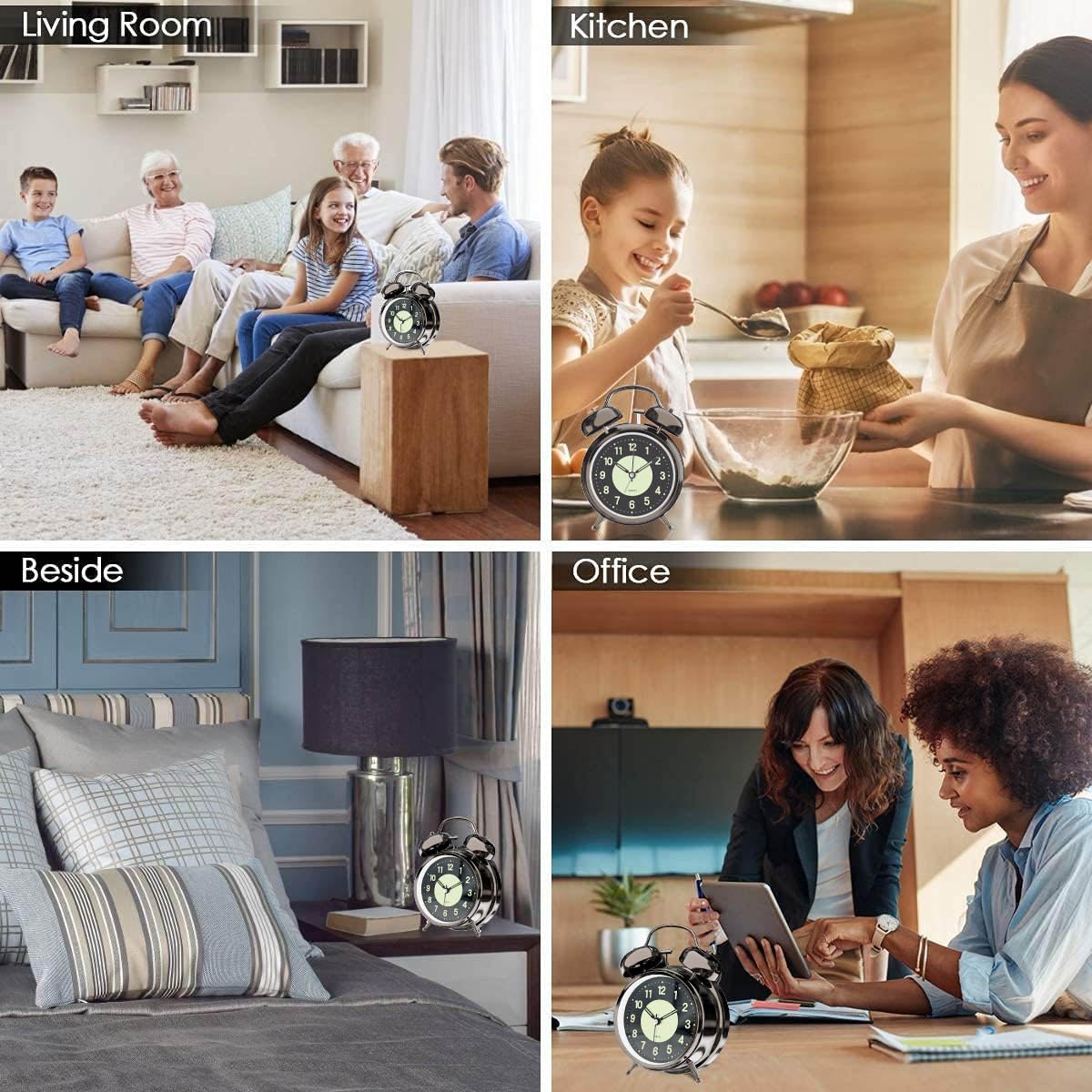 Lesipee Loud Alarm Clock for Heavy Sleeper, Clocks for Bedroom, 4'' Battery Operated Metal Clocks with Night Light, Retro Analog Clock for Student with Luminous dial Non-Ticking, Back to School