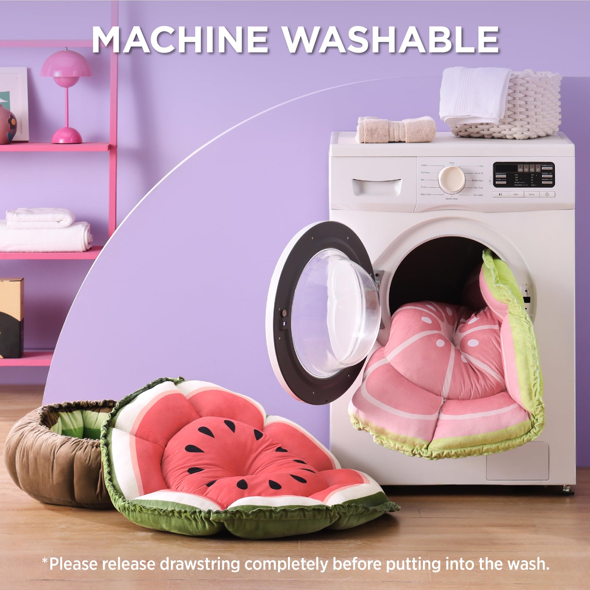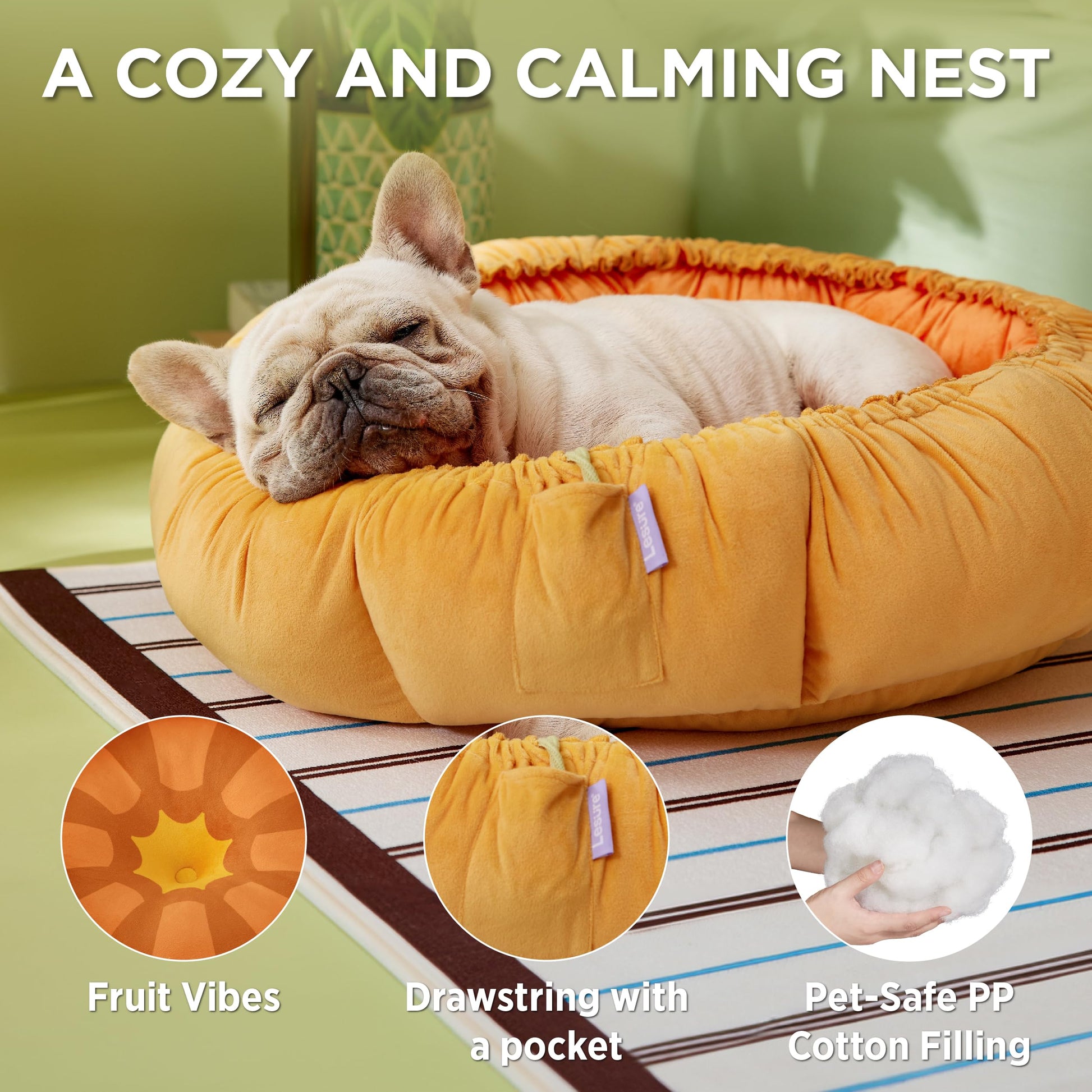 • Fruit Aesthetic: Bring a burst of joy to your home with the unique fruit-themed design. Featuring vibrant colors and a maximalist aesthetic, it’s not just a pet bed but a statement piece that adds fun and fashion to any room. Also available in solid colors for a more classic look.