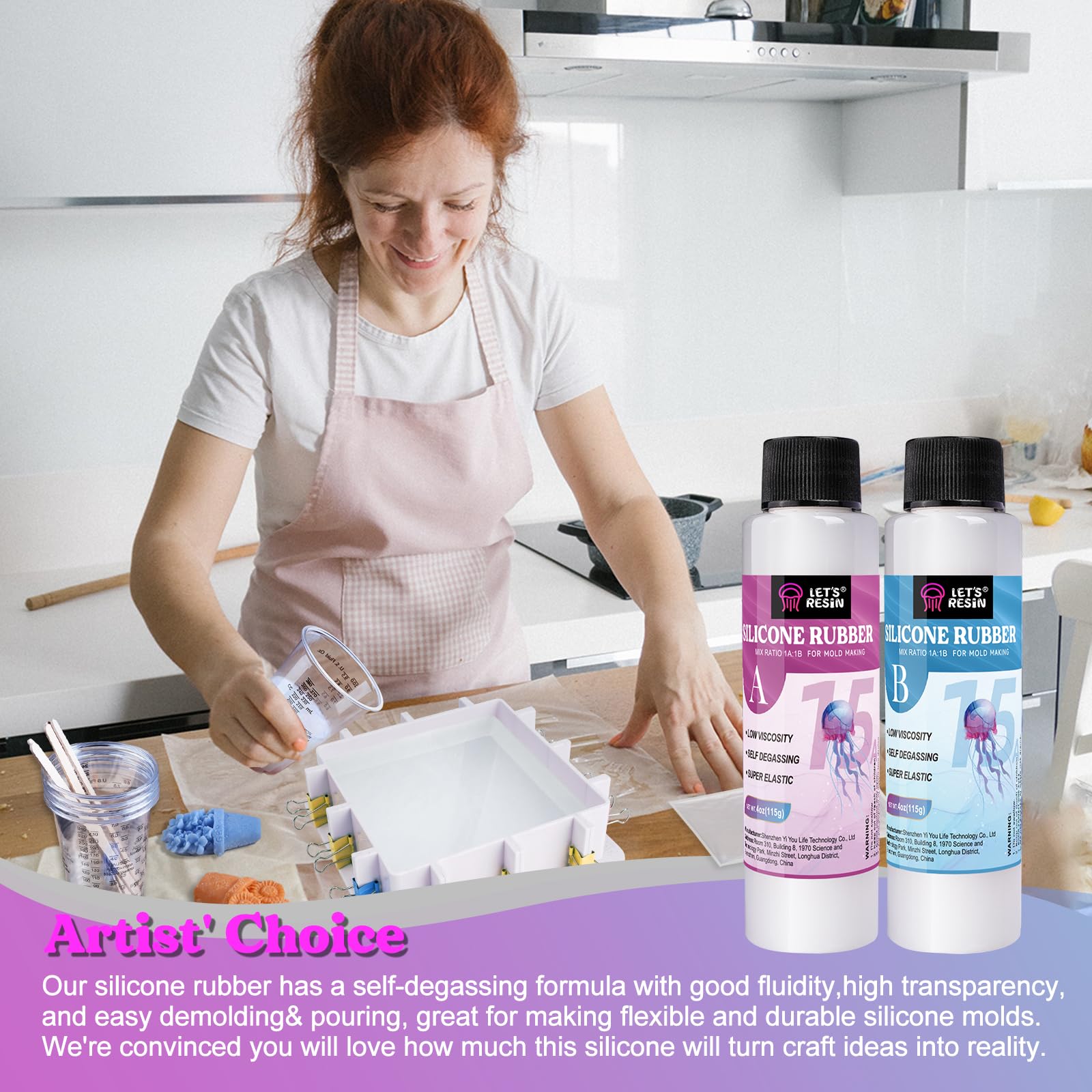 LET'S RESIN 8oz Silicone Mold Making Trial Kit, Fast Cure Mold Making Silicone Rubber, Easy Mixing, Flexible Platinum Cured Molding Silicone for Casting Resin Molds & Silicone Molds (Translucent)