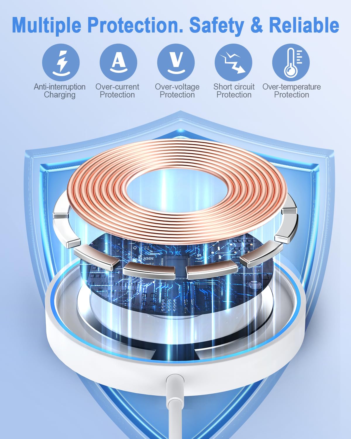 • Safety & Reliable: Wireless charger is made of high-quality materials and advanced Mag Safe magnetic coil, provide multiple intelligent protection. The intelligent charging technology safeguards against overcharging, overheating, and short circuits, ensuring the longevity of both the charger and your devices