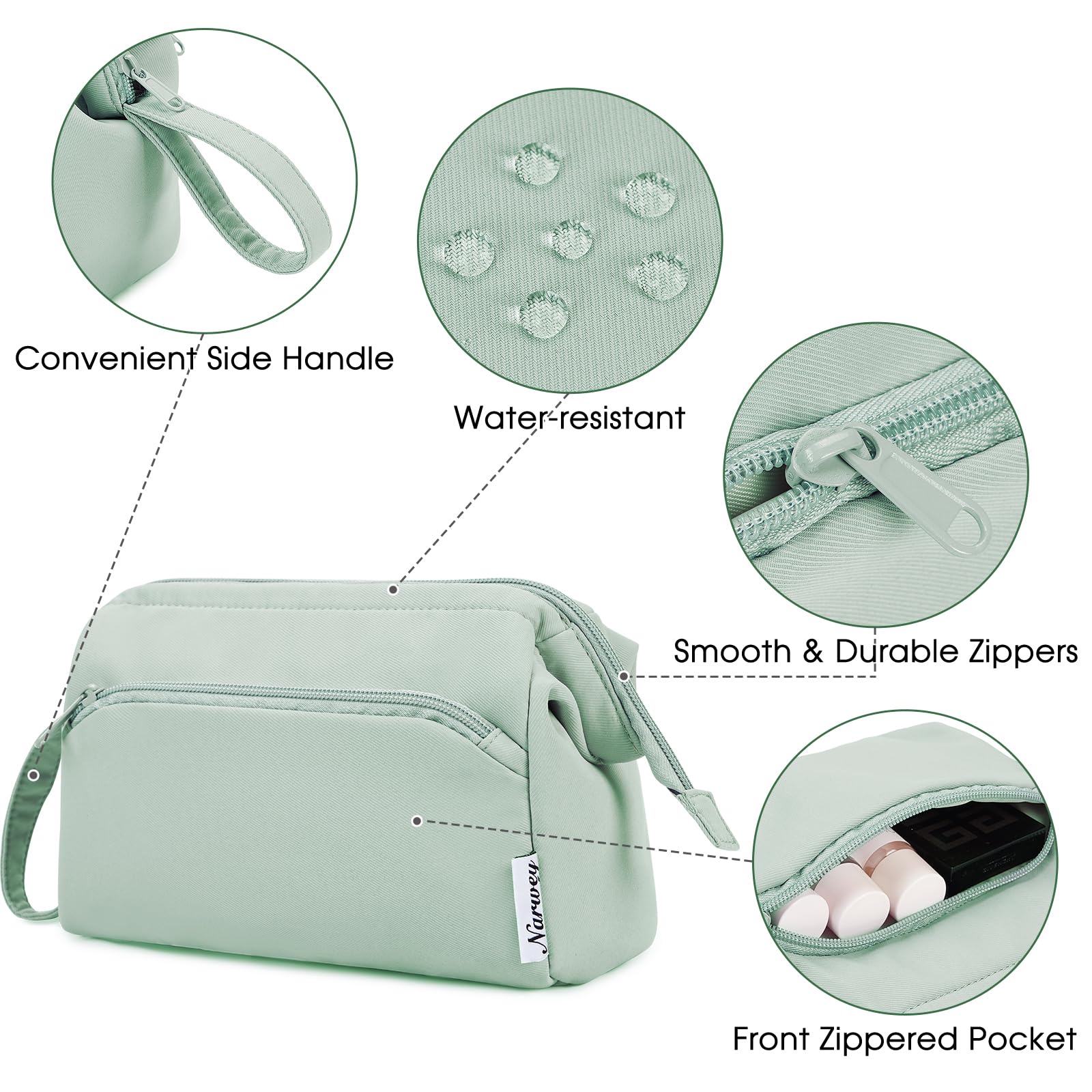 Narwey Wide-open Makeup Bag Women Girls, Travel Toiletry Bag for Women Cosmetic Bag Organizer Make up Bag with Compartments Toiletries Medicine Bag (Mint Green)