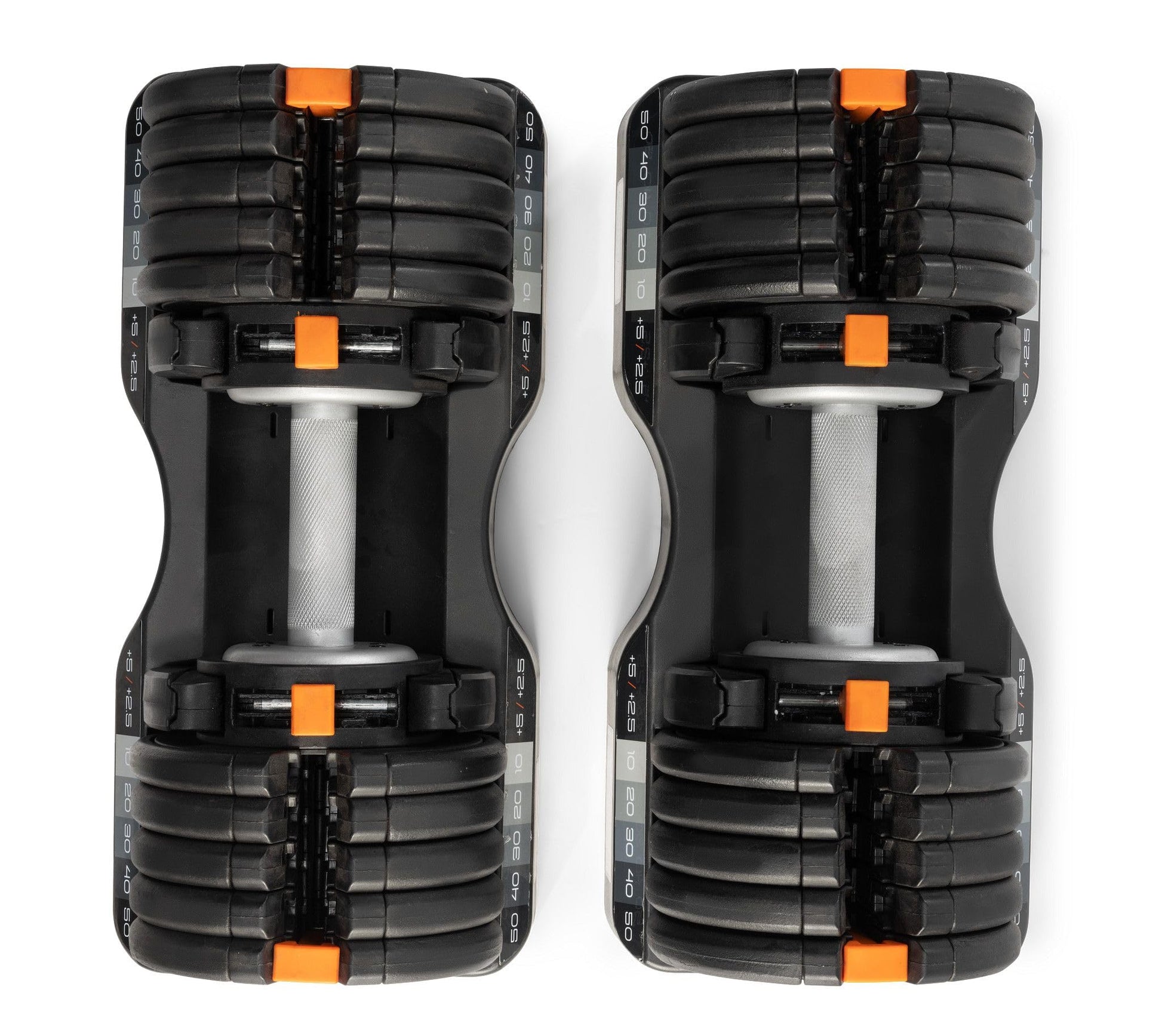 [10 Lb. Handlebars] - Each 55 lb. Select-A-Weight adjustable dumbbell features a 10 lb. handlebar that can be used individually to tone muscles across your entire body.