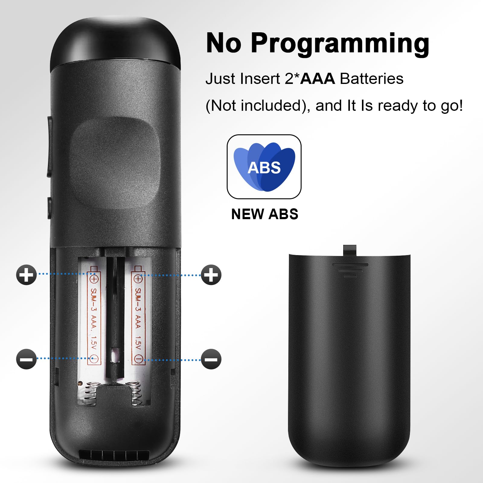 • Packing list== A pack of 2 remotes (batteries not included), easy to use - no programming and pairing required, just plug in 2 AAA batteries and you're ready to go