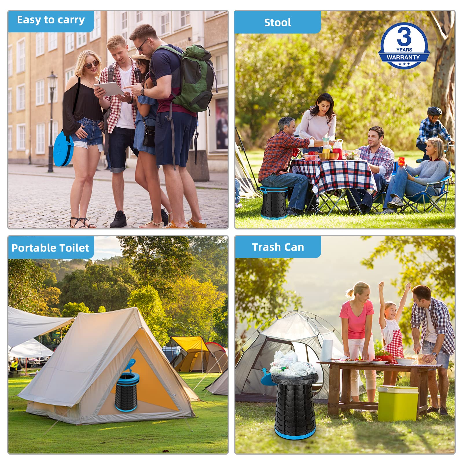 • 【Widely Applicable】This portable toilet serves not only as an emergency loo but also as a trash bin, stool, and side table, making it ideal for backpacking, camping, fishing, and hiking.