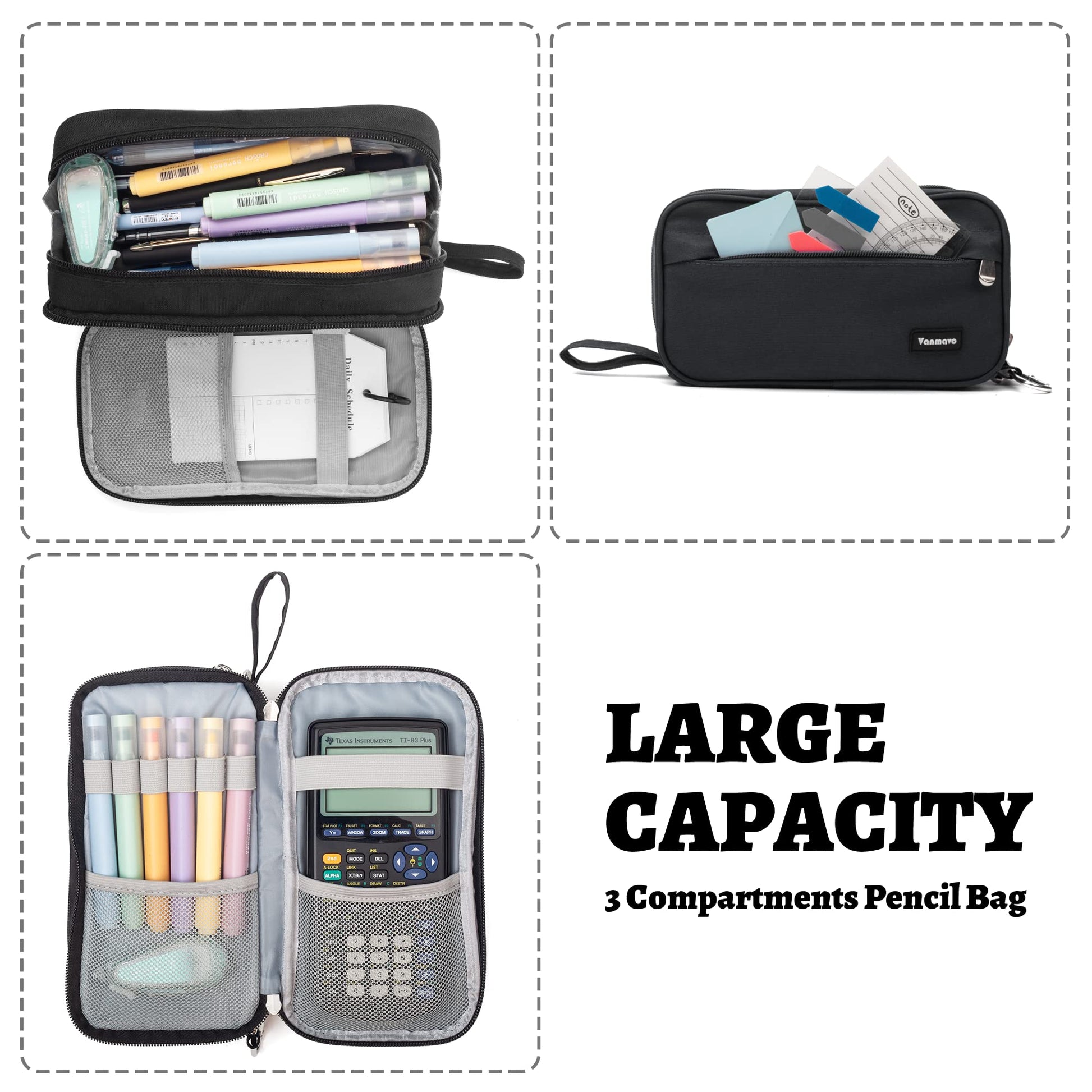 🍰 【WIDE OPEN DESIGN】 🍰 Pen bag top and two sides can opens very wide to allow you to see and find all items easily.
