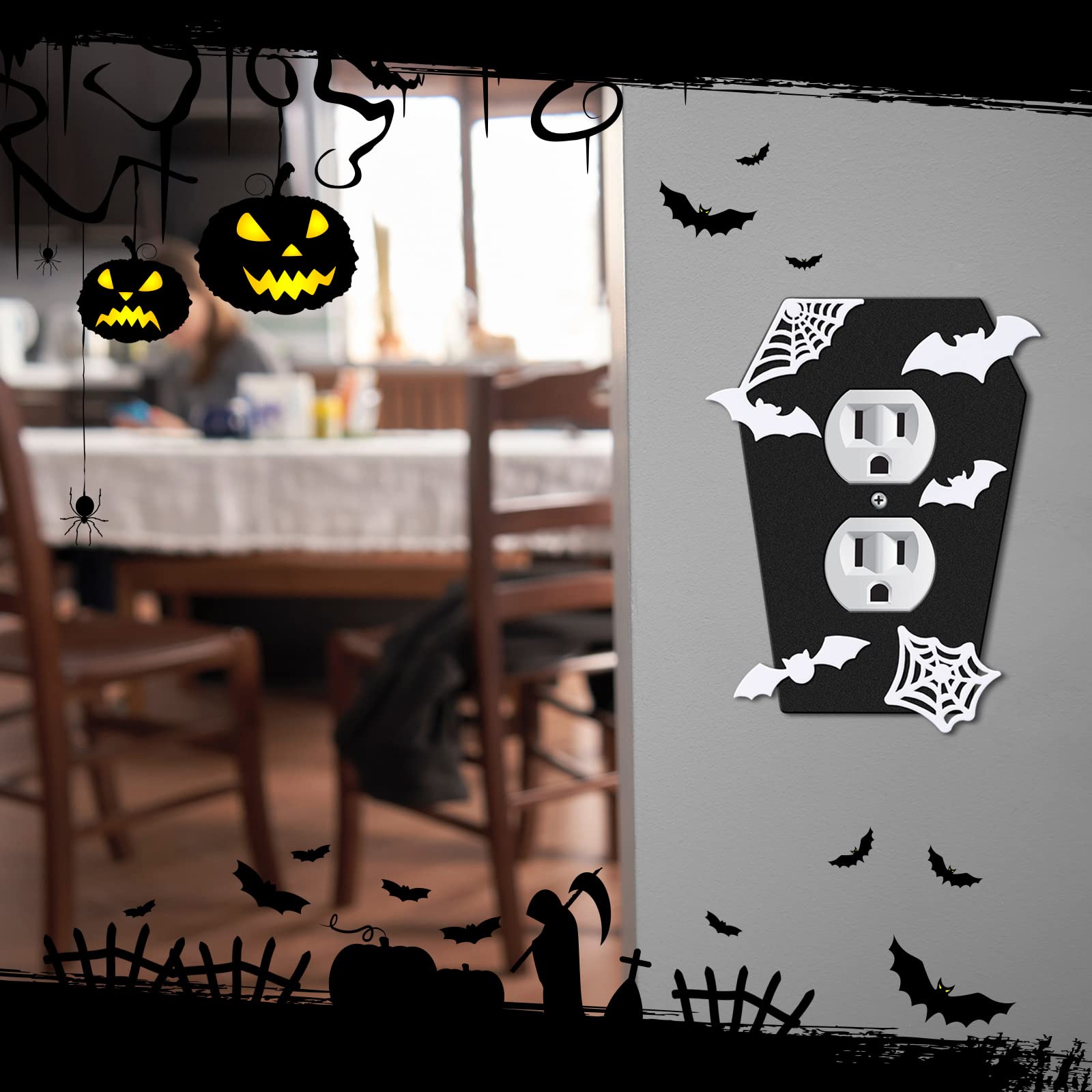 Peryiter 3 Pieces Gothic Coffin Light Switch Cover Wall Plate Gothic Halloween Decor Switch Cover Coffin Outlet Light Goth Bat Wall Plate Outlet Accessory for Bedroom Home Office(Elegant Style)