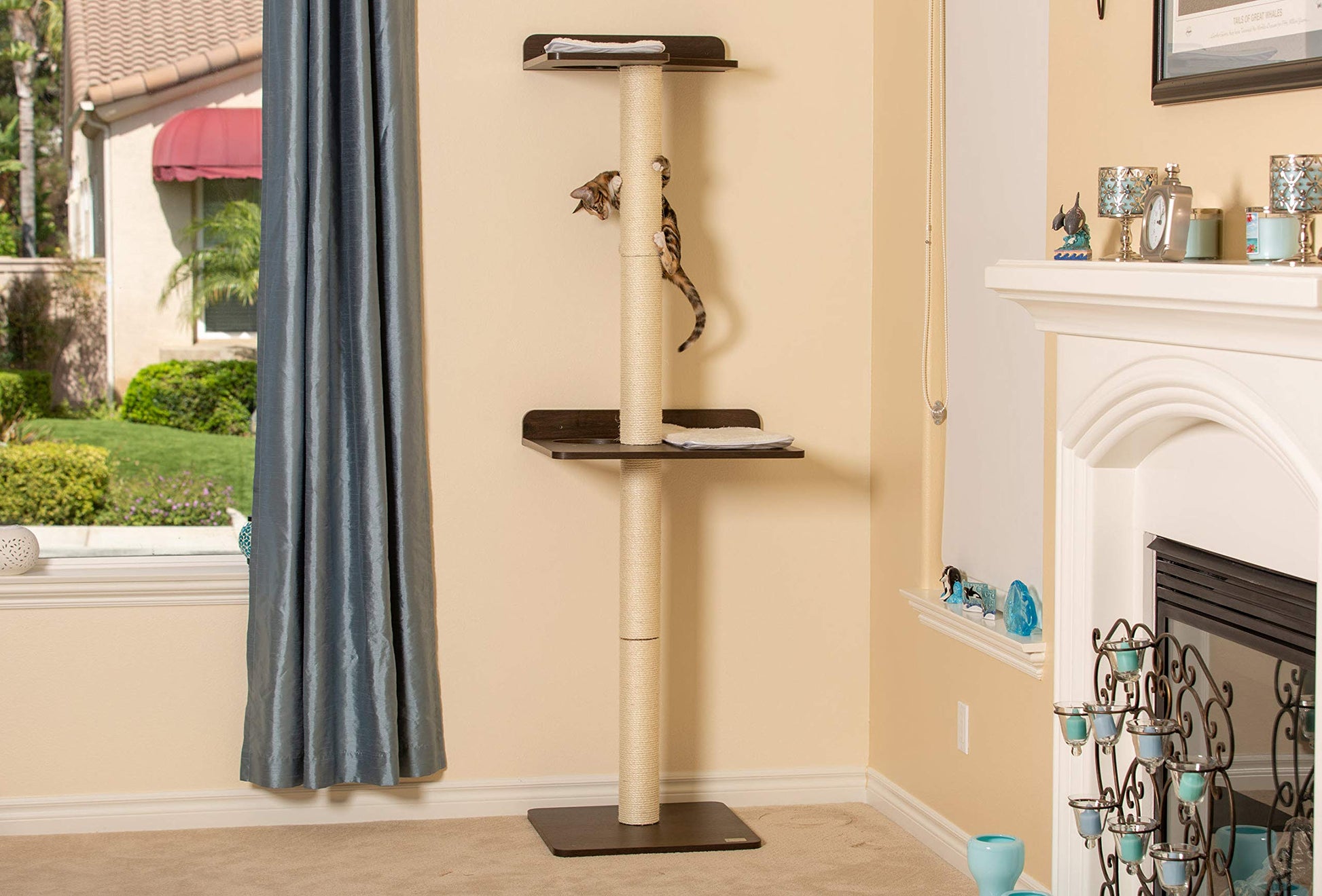 Details: Designed for cats who love to climb and Perch up high. What cats don't? It's part of who they are. A better alternative to the over-engineered cat trees which clutter your living space and prevent your cat from climbing. That's what some cats believe curtains are now for. Easy assembly, 15-20 minute estimated total estimated Time. Includes zinc drywall anchors that can be attached to your wall with a hammer and screwdriver and also easily removed with just a screwdriver. No drilling required unless you prefer to anchor in studs or have plaster walls.