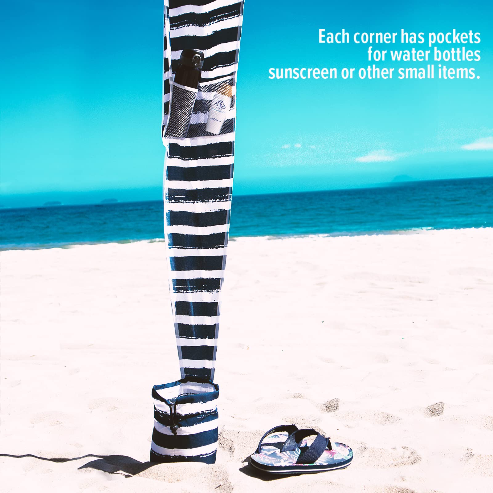 • Features A Pocket On Each Corner: Inside pockets on every corner of the cabana for sunscreen, phones, water bottle or other smaller items.