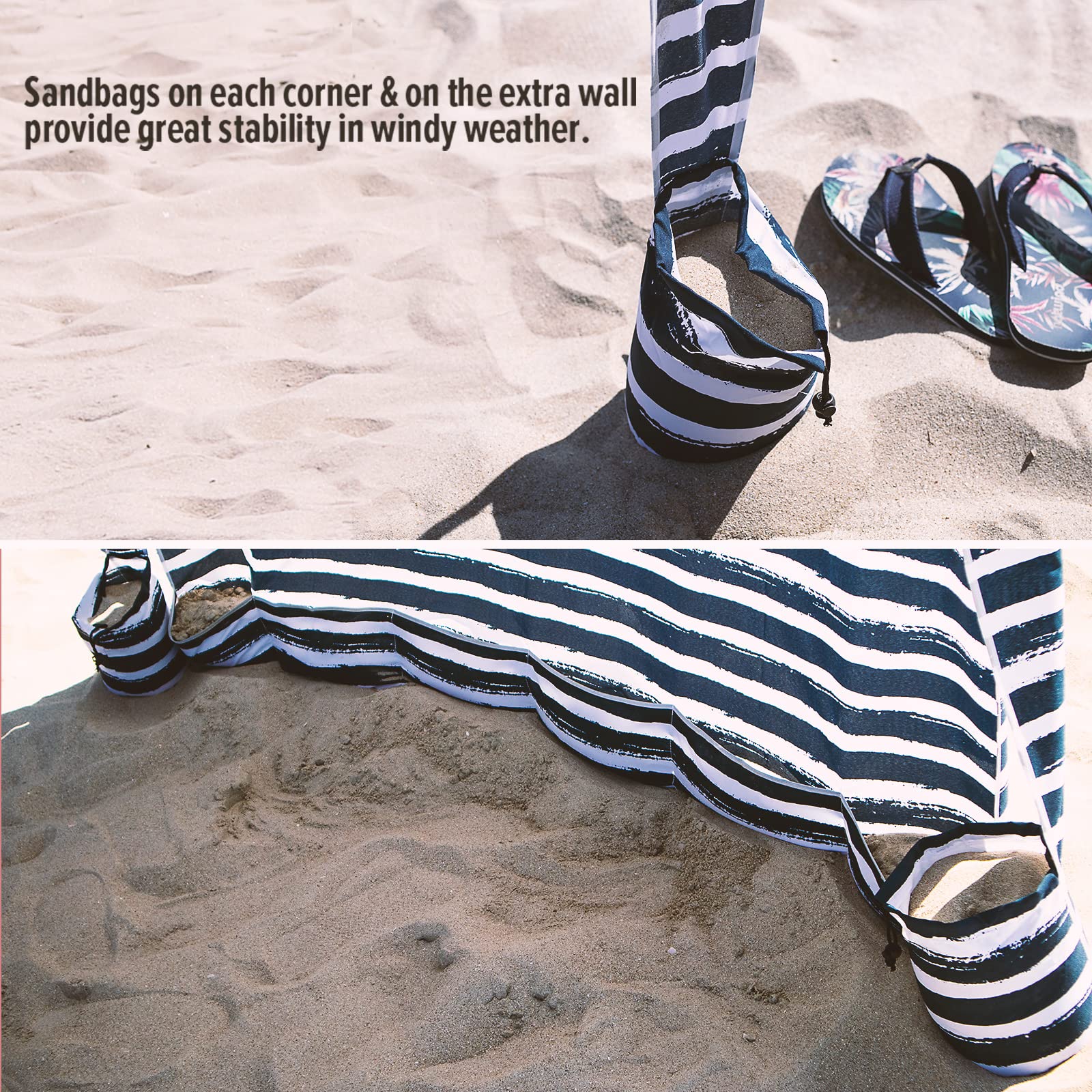 • Sand Bags & Stakes For Easy Fixture & Sturdy: Sturdy, durable fiberglass structure holds the roof, 4 included stakes and built-in sand bags makes for easy fixture of the tent's 4 corners on all surfaces.