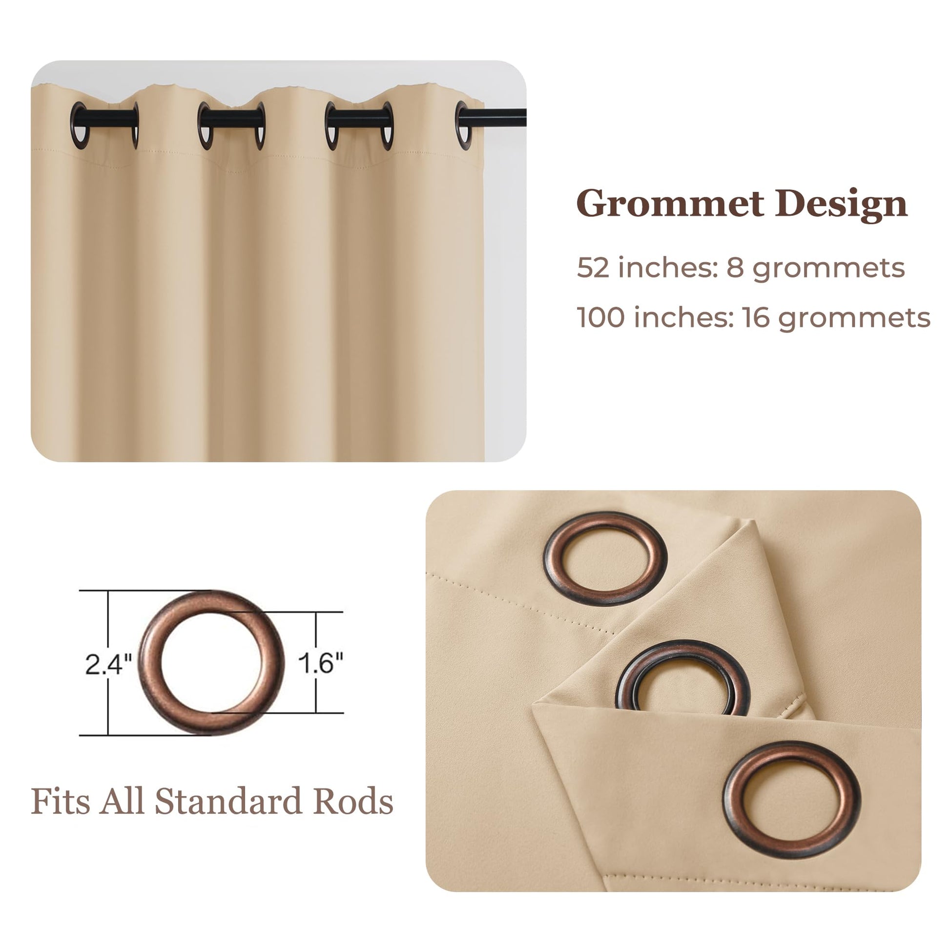• Features Antique Bronze Grommet Top - Can be hung from a standard or decorative curtain rod, the ring size is about 1.6' and 2.4' for Inside and outside diameter