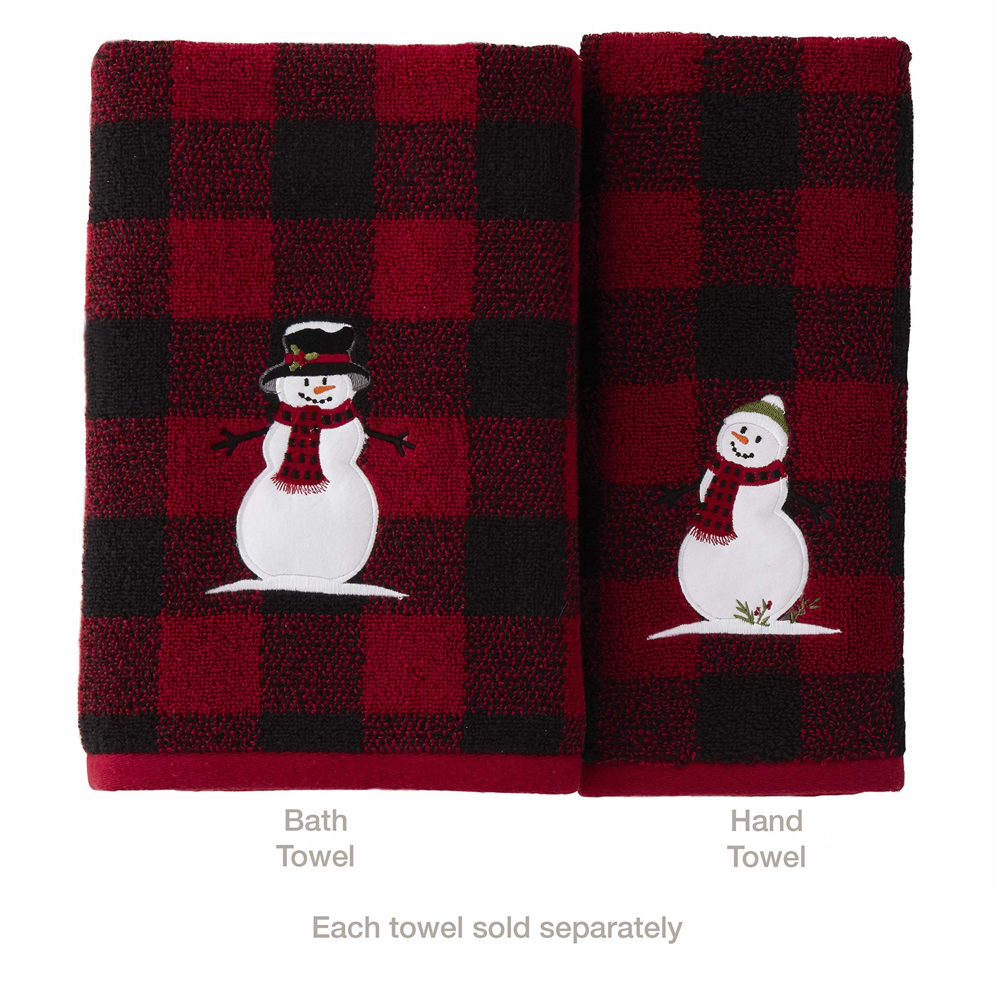 Details: Celebrate the season with the Woodland Winter two piece hand towel set. Large buffalo checks embroidered with a happy snowman welcomes the holidays. Add the rest of the Woodland Winter coordinates for a complete holiday bathroom refresh.