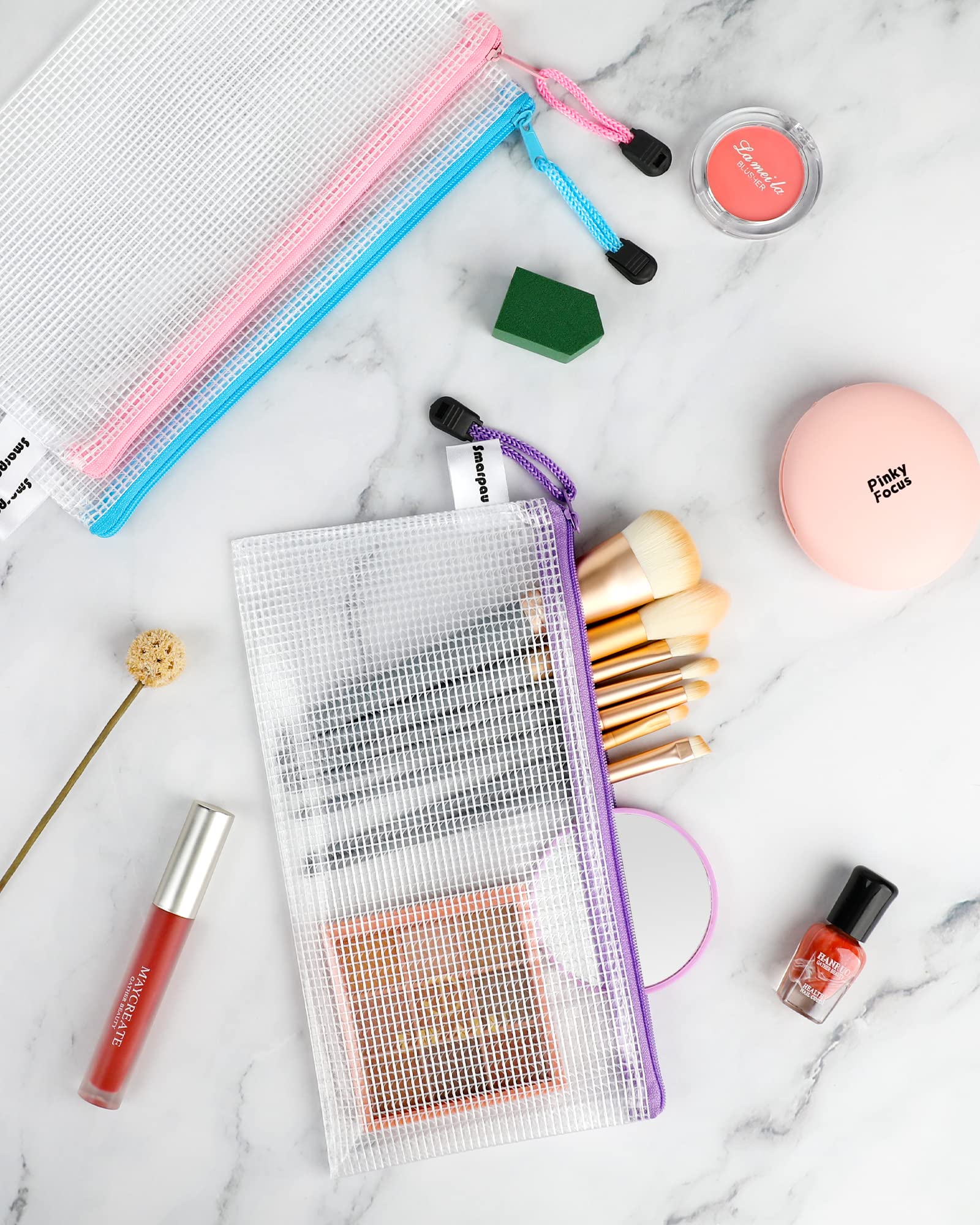 • WHAT YOU GET: 24 packs of 12 colors 9.3' x 4.7' mesh zipper pouch. Black, gray, rose red, red, orange, silver, sky blue, purple, pink, green, yellow, blue, 2 packs of each color. Different colors can help you better differentiate.