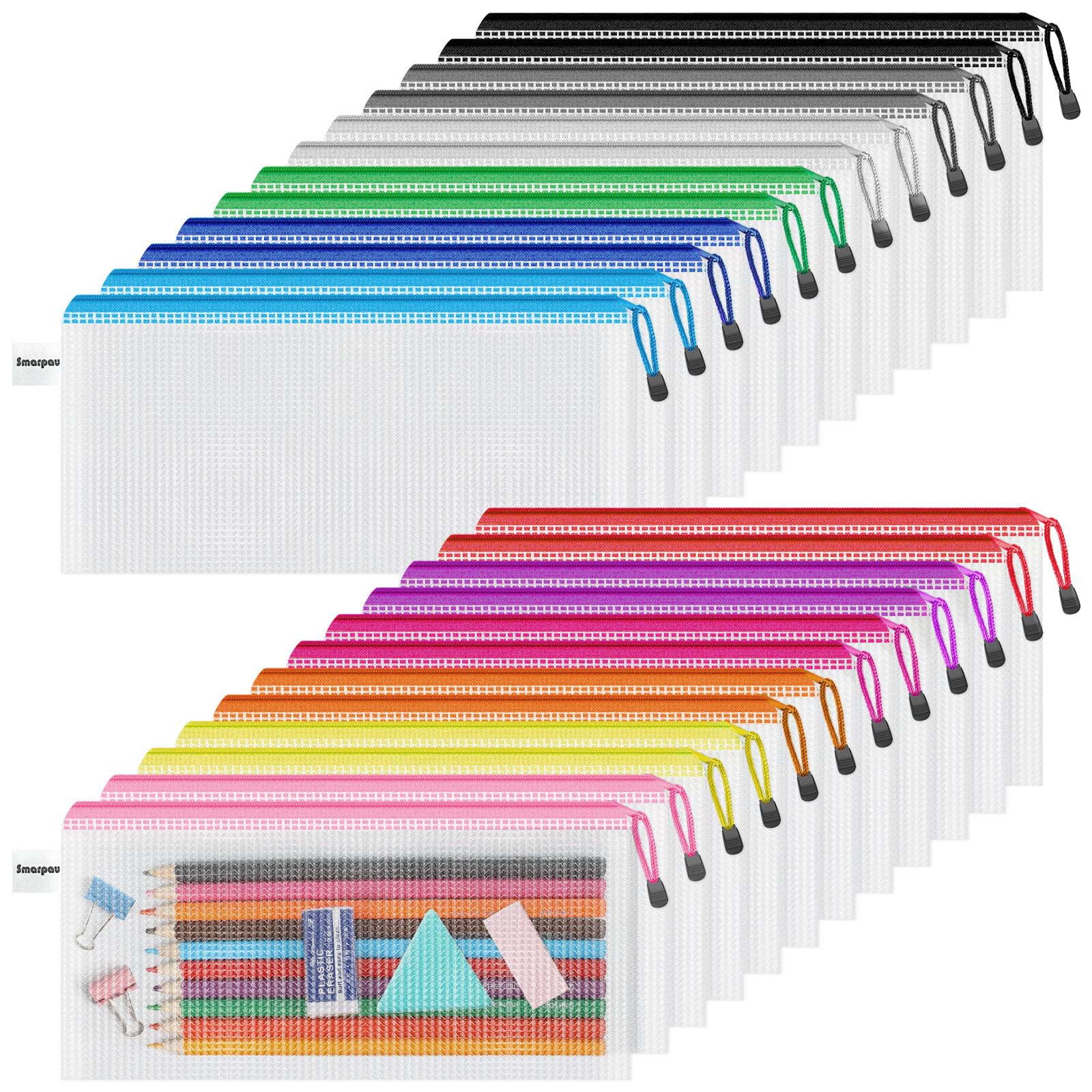 Smarpau 24PCS Pencil Pouches Bulk, 9.3" x 4.7"Mesh Zipper Pouch Pencil Case, 12 Colors Waterproof Small Zipper Pouches for Travel, Cosmetics, Office Organization