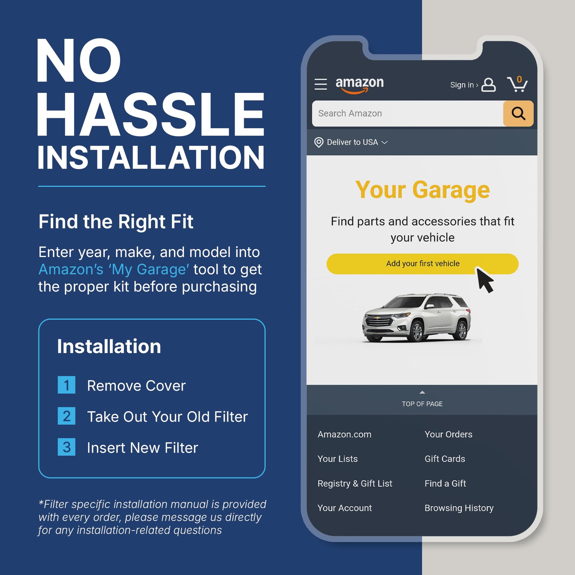 • Verify Fitment First, Do it Yourself: Make sure to enter your vehicle's year, make and model above using 'Filter results by your vehicle' tool to accurately verify vehicle fitment; the cabin filter is an easy replacement that can save you money at the repair shop; installation manual included w/every order