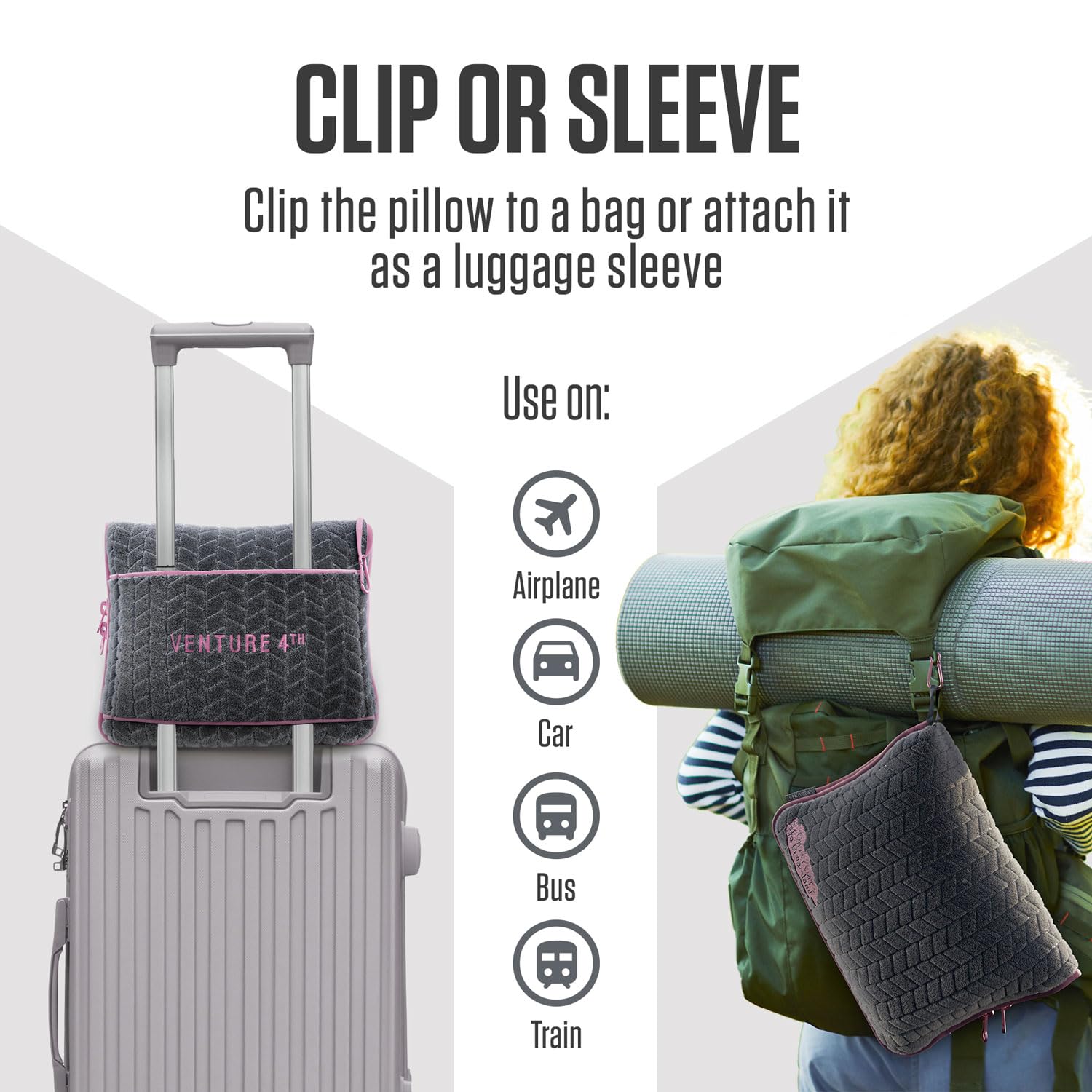VENTURE 4TH Travel Blanket Pillow – Premium Ultra-Soft & Warm 2-in-1 Blanket or Pillow for Airplane, Car & Bus – Compact, Lightweight & Portable – Lint-Free, No Shedding, No Pilling - Gray/Pink
