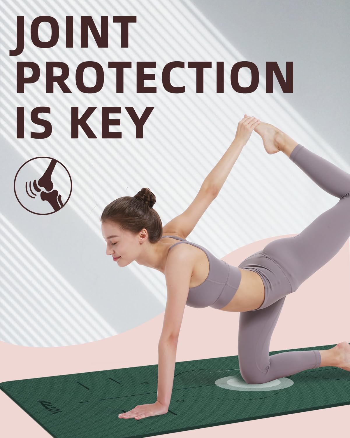 • Non-Slip Yoga Mats: Surface flippers webbing design, inspired by the penguin's flippers, improve the resistance factor, and sweat without slipping, strong and durable to prevent ripping suitable for yoga, pilates, weight training, and other floor exercises. Alignment Marks Yoga Mats are more helpful for beginners.